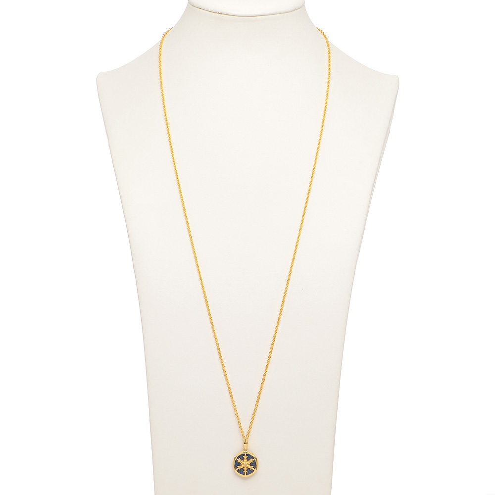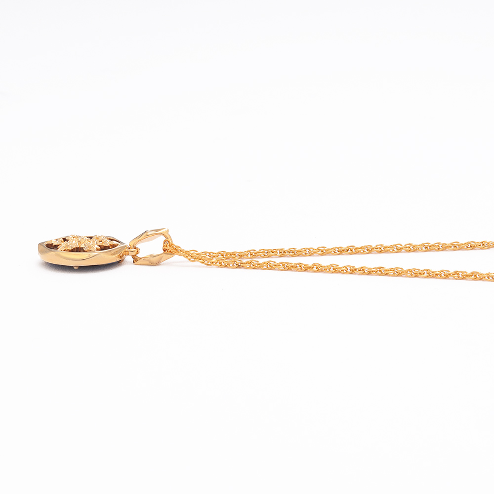 ラピスラズリを雪のモチーフで覆ったペンダント。商品画像の説明