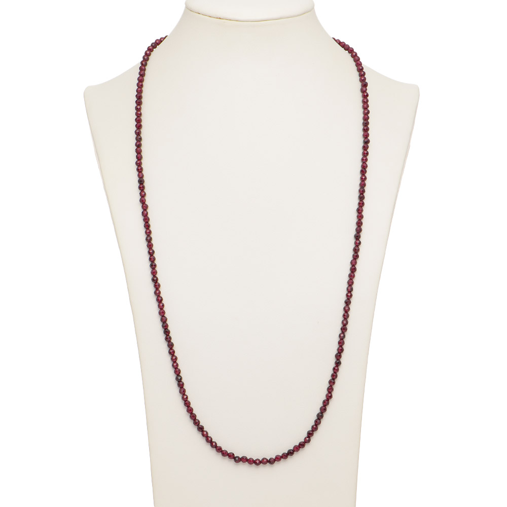精緻なカットと多彩なシェイプが、ガーネットの華やかさを引き立てるアイテム。カットが煌めくネックレスは長さ違いを重ね着けしても。