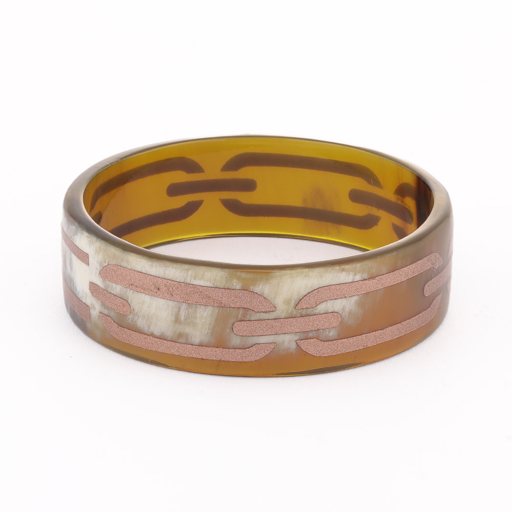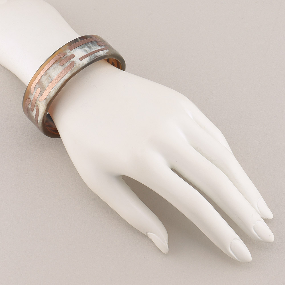 水牛 ペイントデザインバングル (太幅) 水牛 べっ甲 珊瑚 ジュエリー アクセサリー J09105