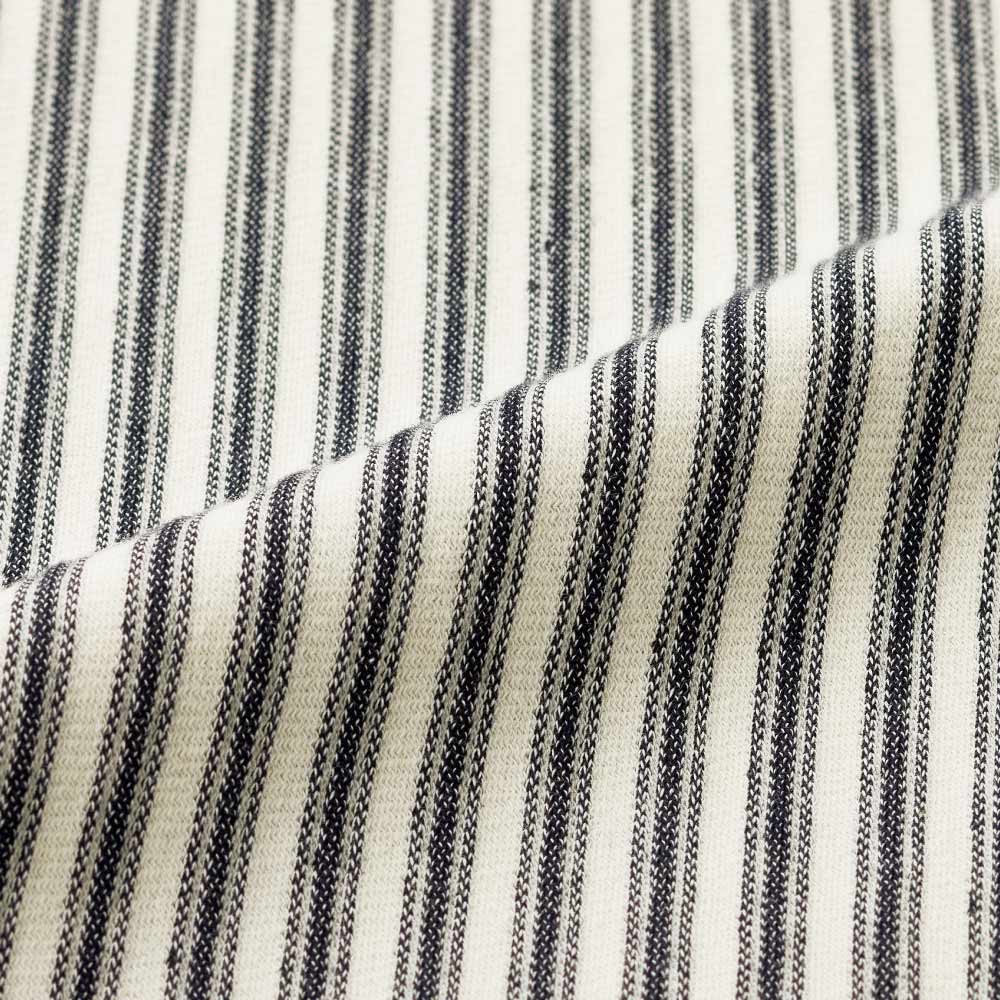 コットン素材を濃淡ストライプに編み上げて涼やかなムードに。