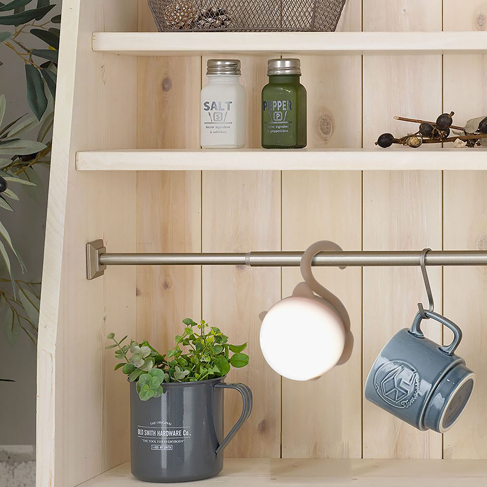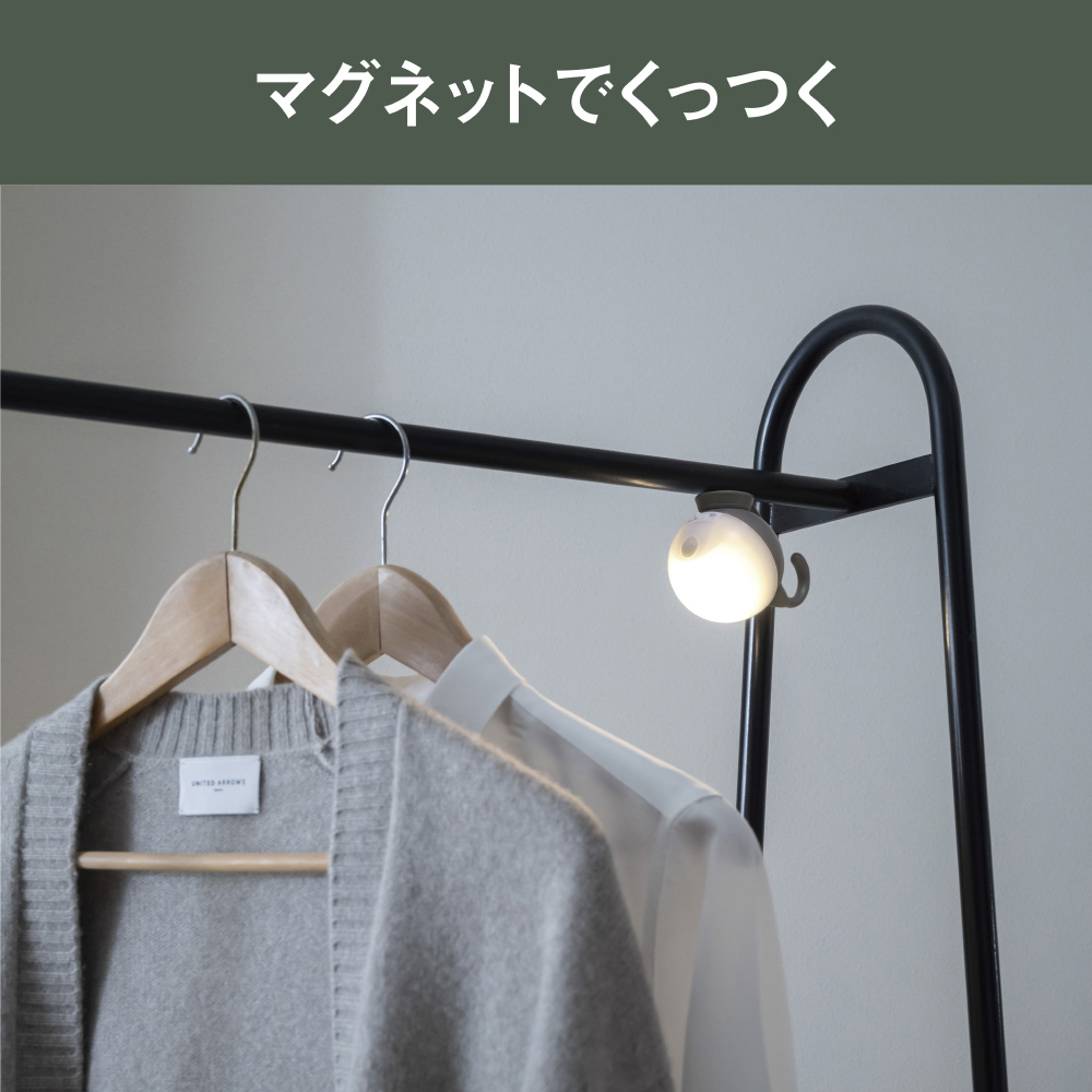 コンパクトだから、置き場所に困らない。しっぽをつかってひっかけて、マグネットでくっつけて、家じゅうどこへでも。