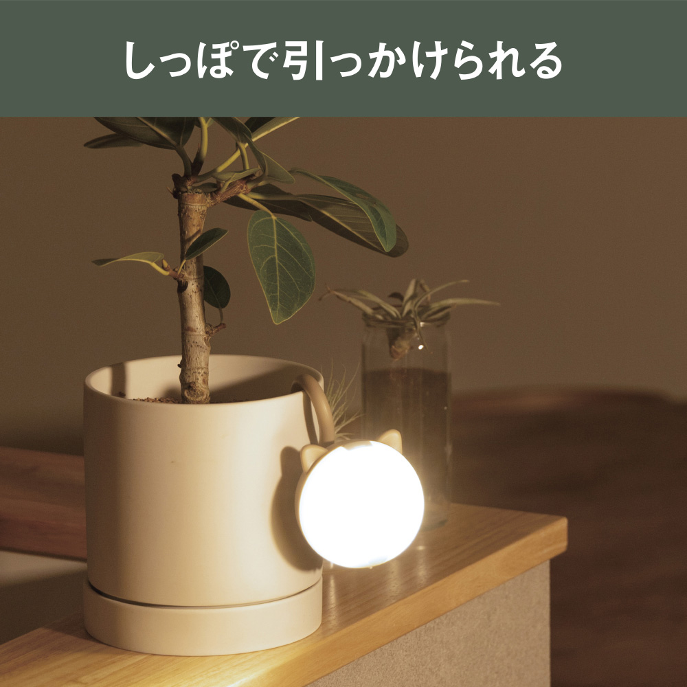 人が近づくと自動でパッと点灯、まんまるねこちゃんライトがあかるくお出迎えします。