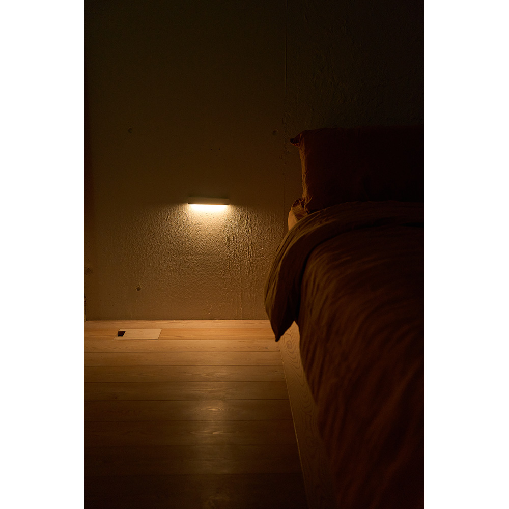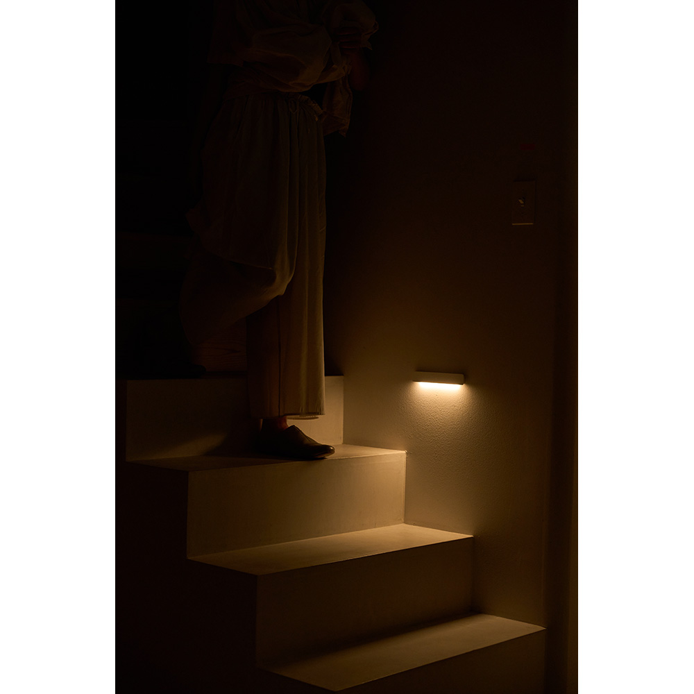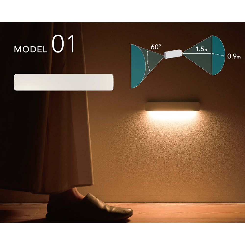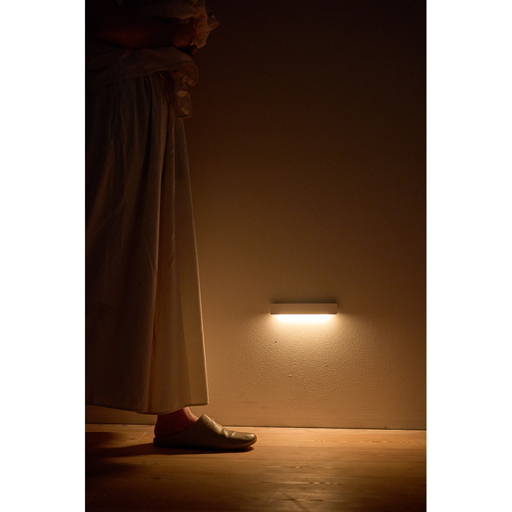 照明設計士の監修により、配光・色温度・演色性をつきつめ、従来のセンサーライトにはない、陰影を生かす、美しい「あかり」を実現。壁面から飛び出さない標準薄型設計、人の目を直射しない暖色の間接光と徹底的にムダを排除したプロダクトデザイン。