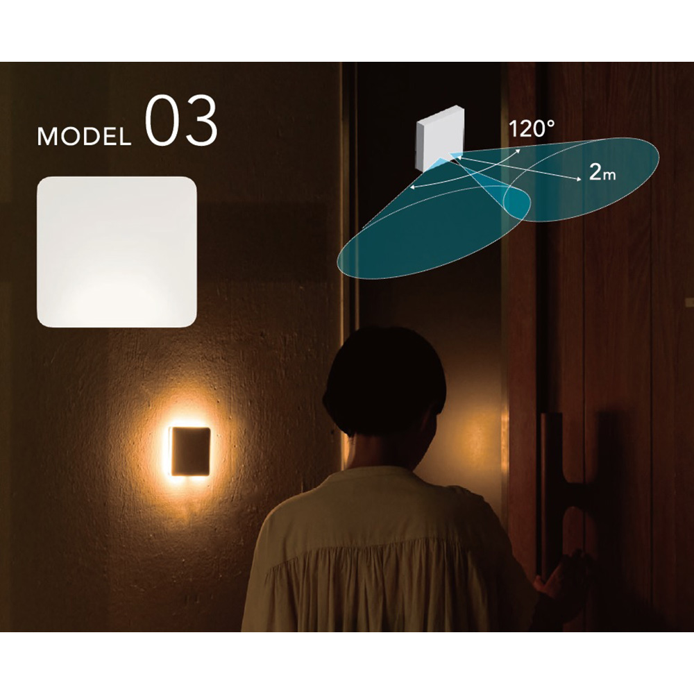 照明設計士の監修により、配光・色温度・演色性をつきつめ、従来のセンサーライトにはない、陰影を生かす、美しい「あかり」を実現。壁面から飛び出さない標準薄型設計、人の目を直射しない暖色の間接光と徹底的にムダを排除したプロダクトデザイン。