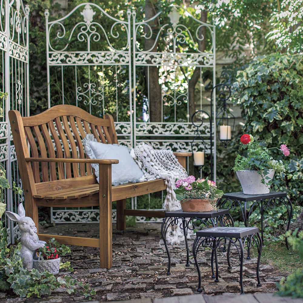 ◆重厚感あるスチールにアンティーク加工を施したフェンスは、イングリッシュ風ガーデンにもしっくりなじみます。