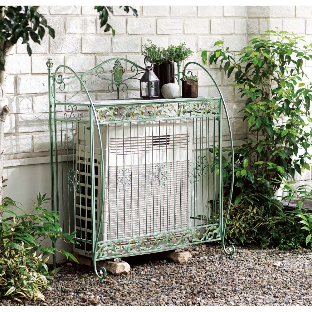 ・重厚感あるスチールにアンティーク加工を施した室外機カバーは、イングリッシュ風ガーデンにもしっくりなじみます。