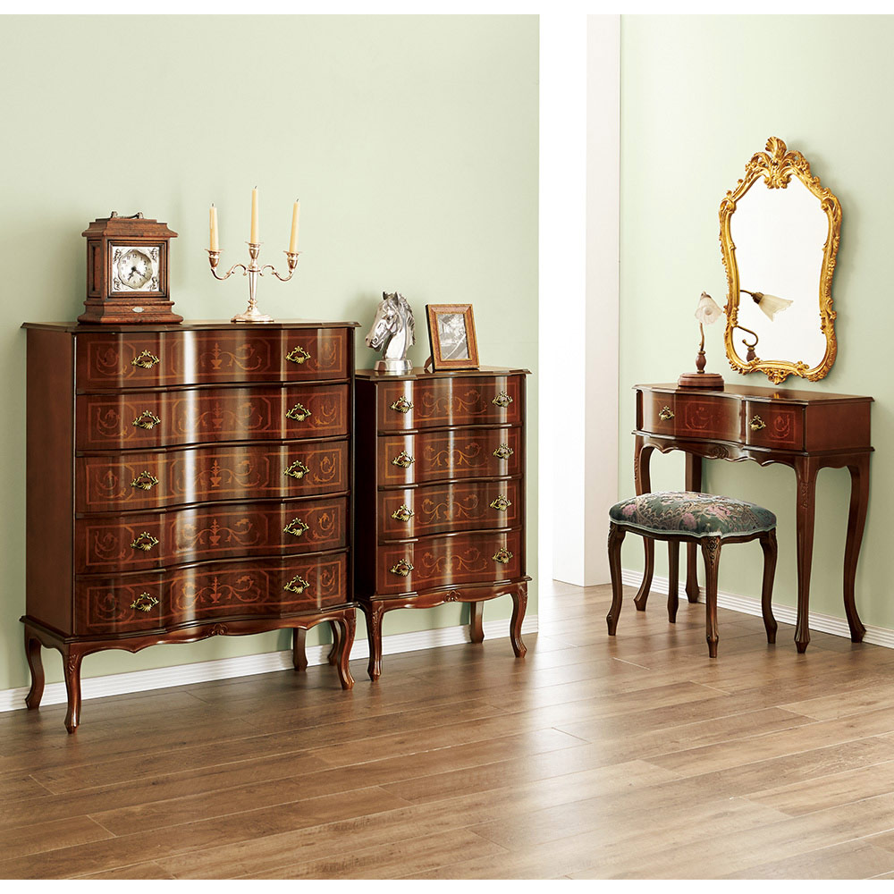 ◆フロント(引き出し前面)の曲線が美しく風格漂うヨーロピアンデザイン。