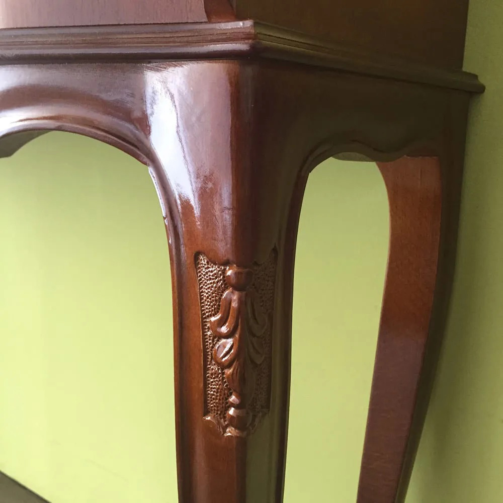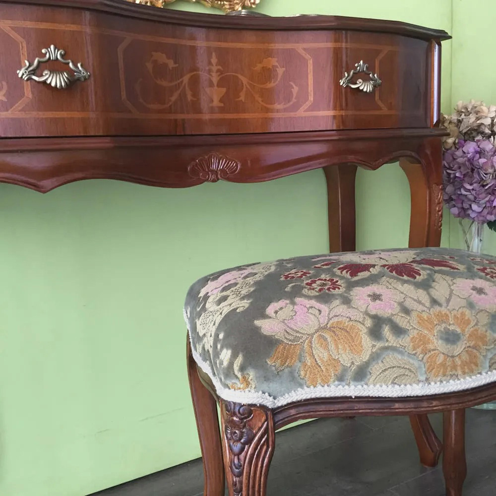 ◆脚部は、なめらかな曲線美が女性らしさを演出する猫脚。◆しなやかに存在感を際立たせるガブリオールレッグは、アンティーク家具で人気のデザインです。