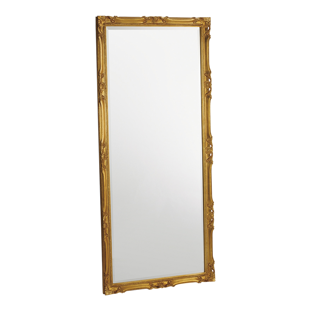 イタリア職人の手仕事による繊細な金箔貼りの彫刻を施した大型クラシックミラー