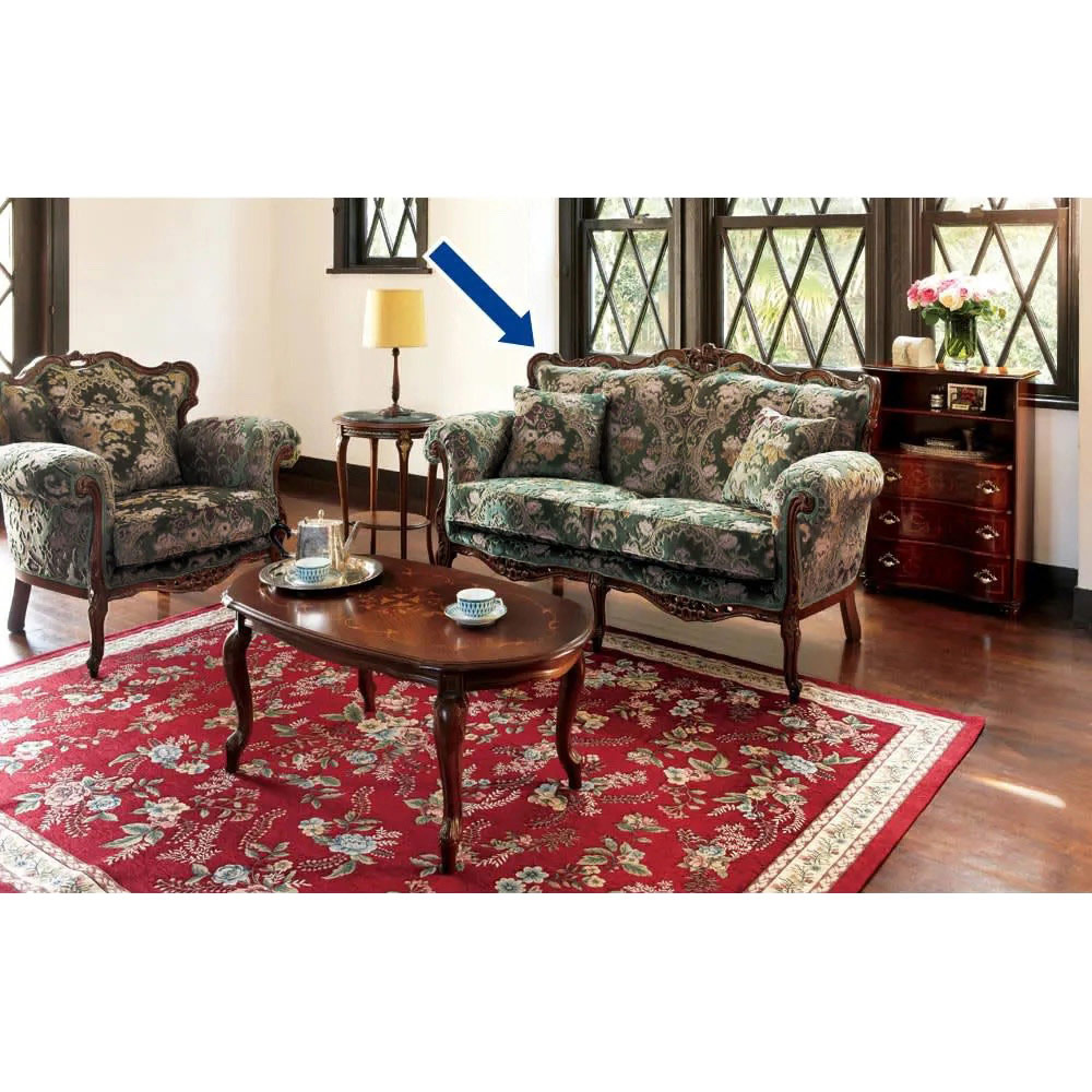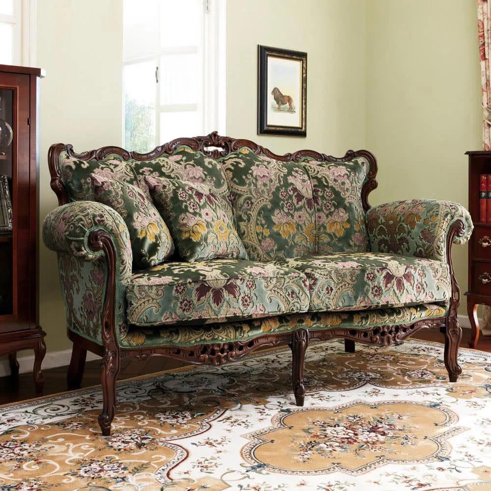 イタリア製 金華山織り張り クラシックデラックスソファII ラブソファ(2人掛け) アンティークソファ ソファ 585365
