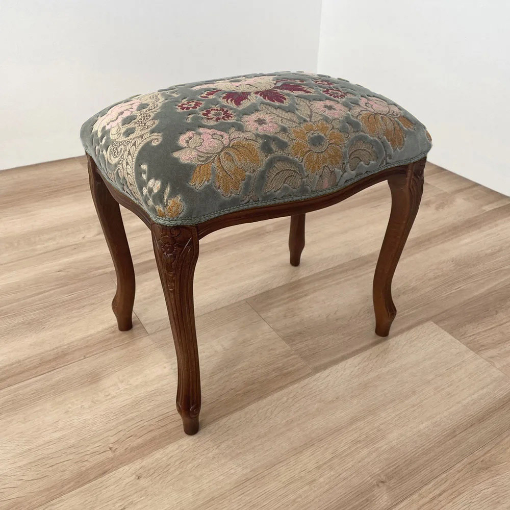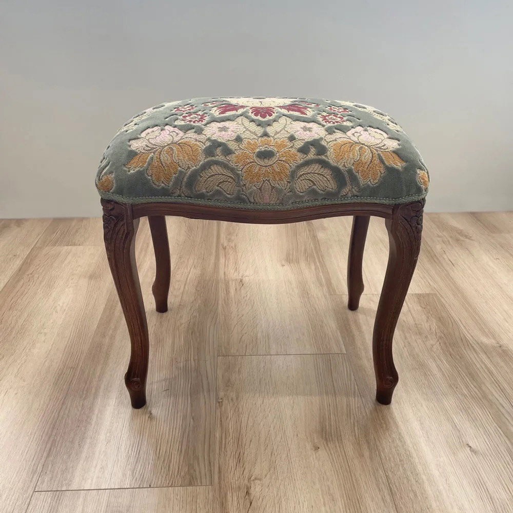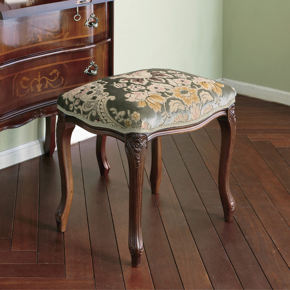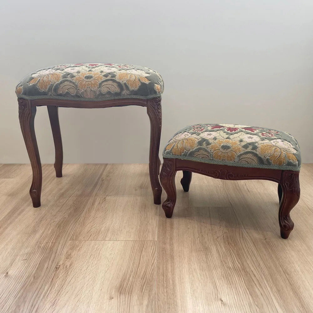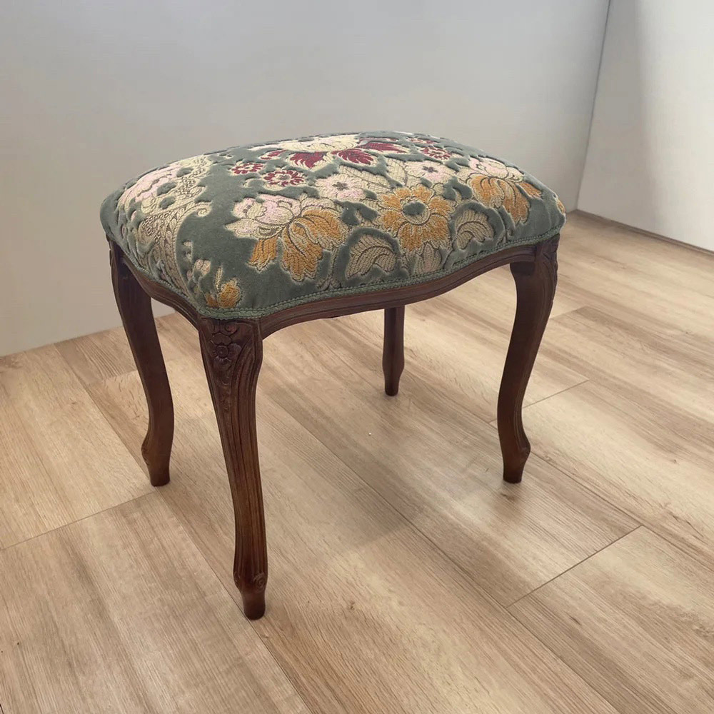 脚部の彫り、生地の美しさ。置くだけでお部屋が華やぐスツールです。 ※お届けはスツール単体となります。