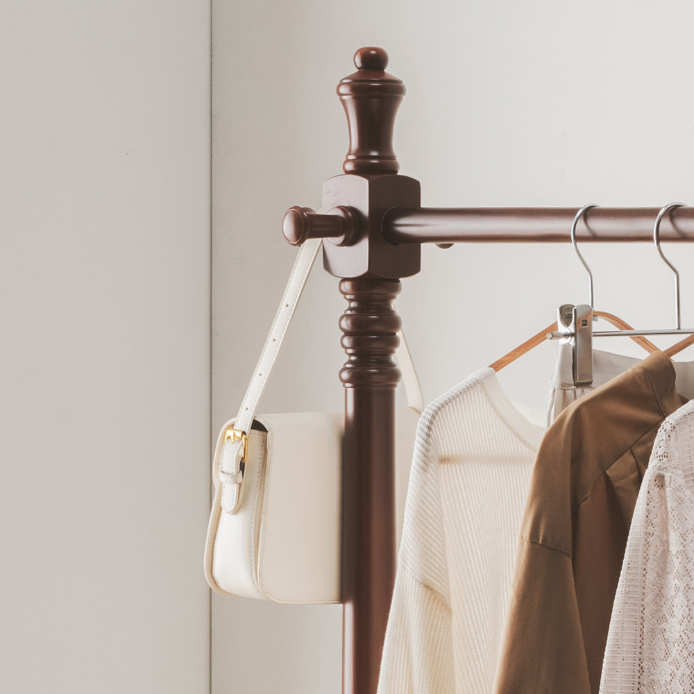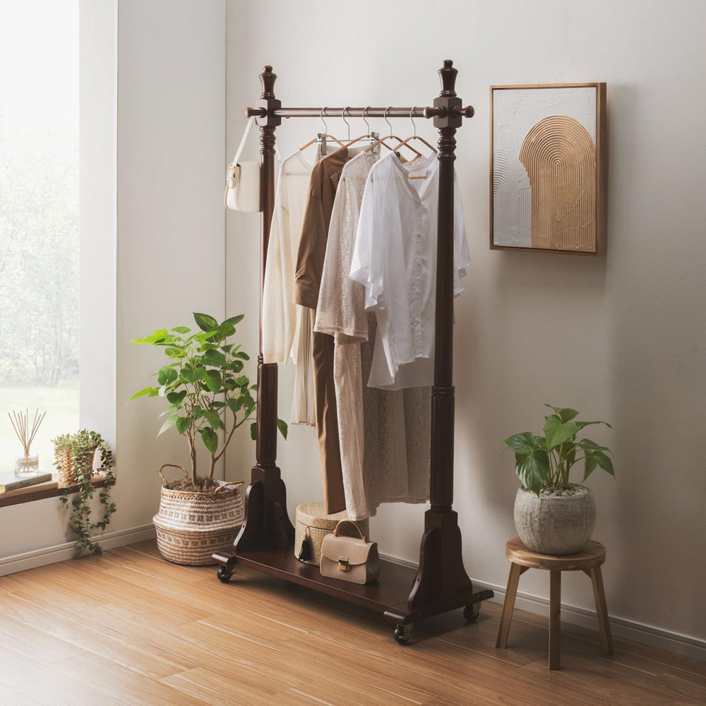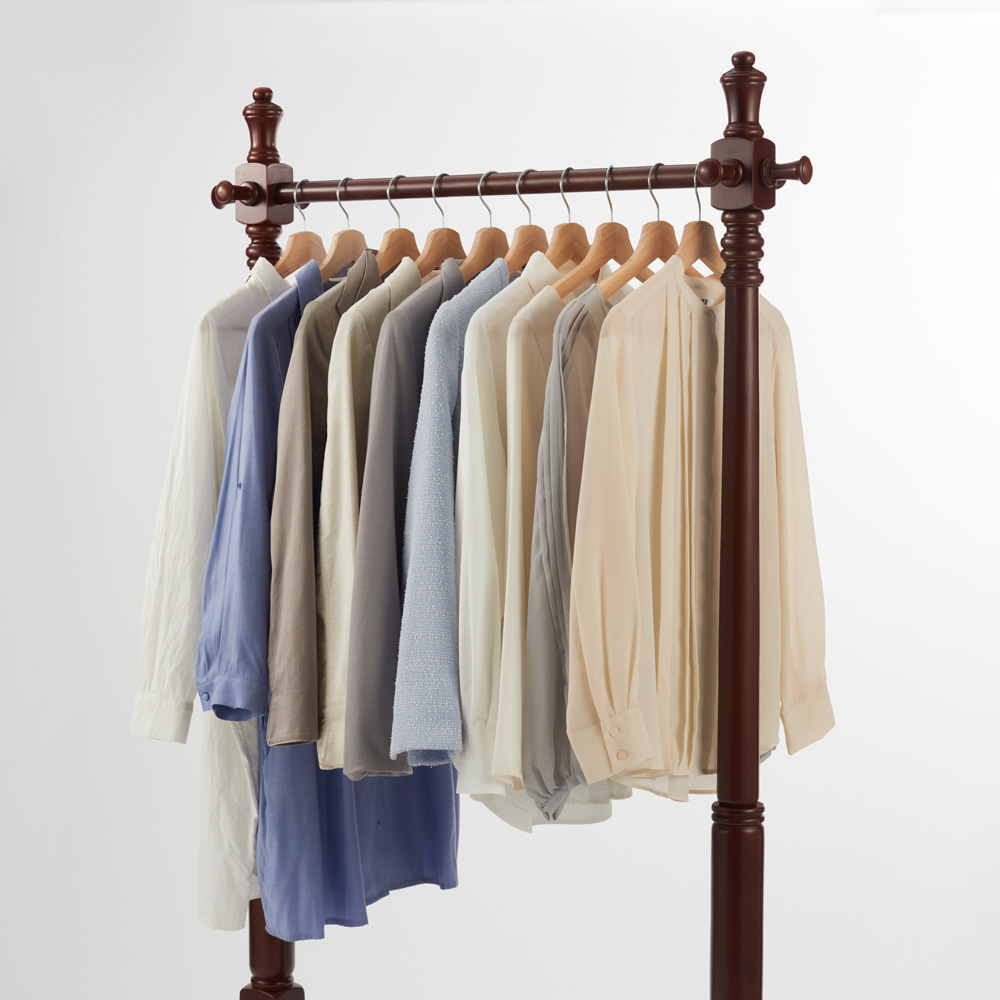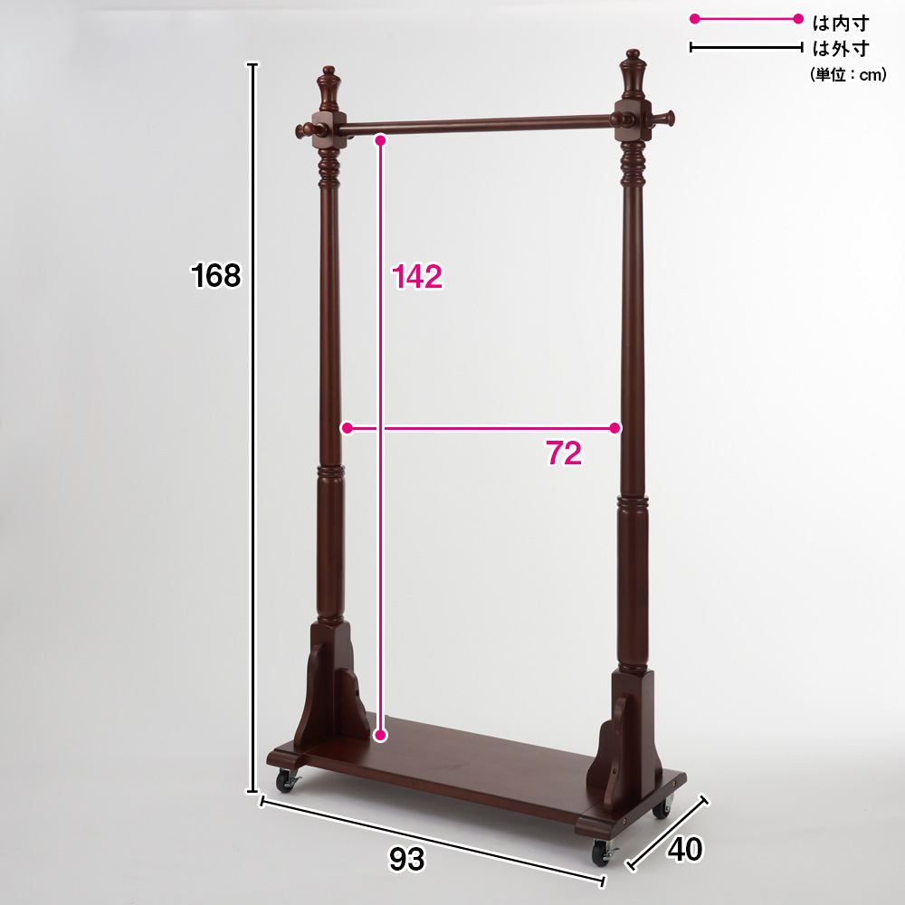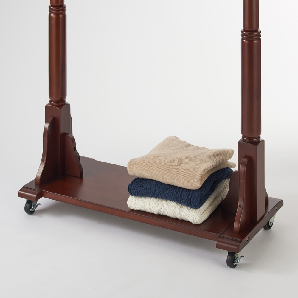 マホガニー天然木 キャスター付きハンガーラック 幅97cm奥行40cm高さ168cm コートハンガー コート掛け 衣類収納 631817