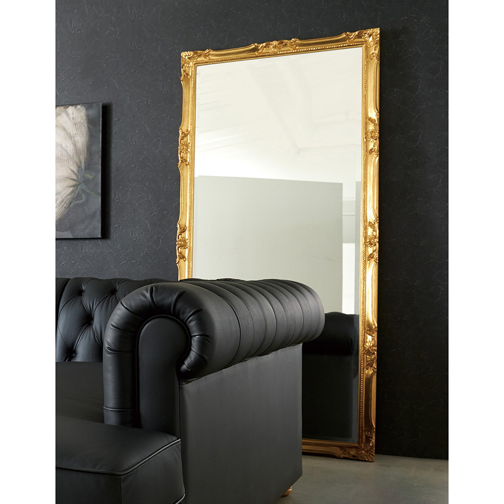 イタリア職人の手仕事による繊細な金箔貼りの彫刻を施した大型クラシックミラー