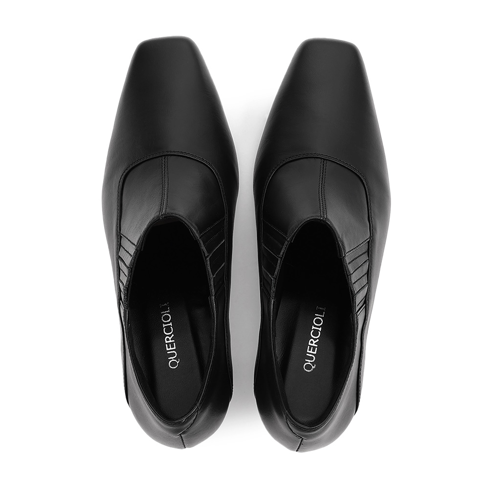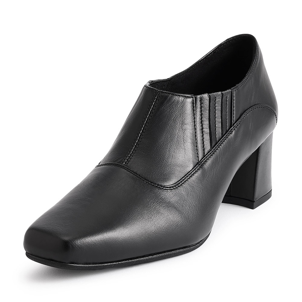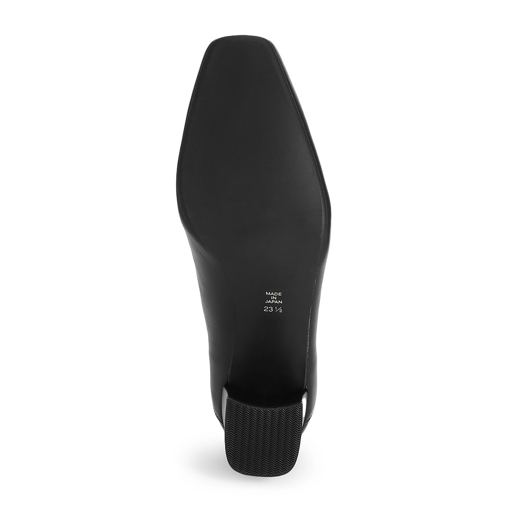 スクエアトゥのスタイリッシュなフォルムと安定した約5.5cmヒール高のブロックヒールが颯爽とした美脚を演出。機能面でも、履き口の隠しゴムがフィット感の向上と、脱ぎ履きを容易にします。≫ POINT