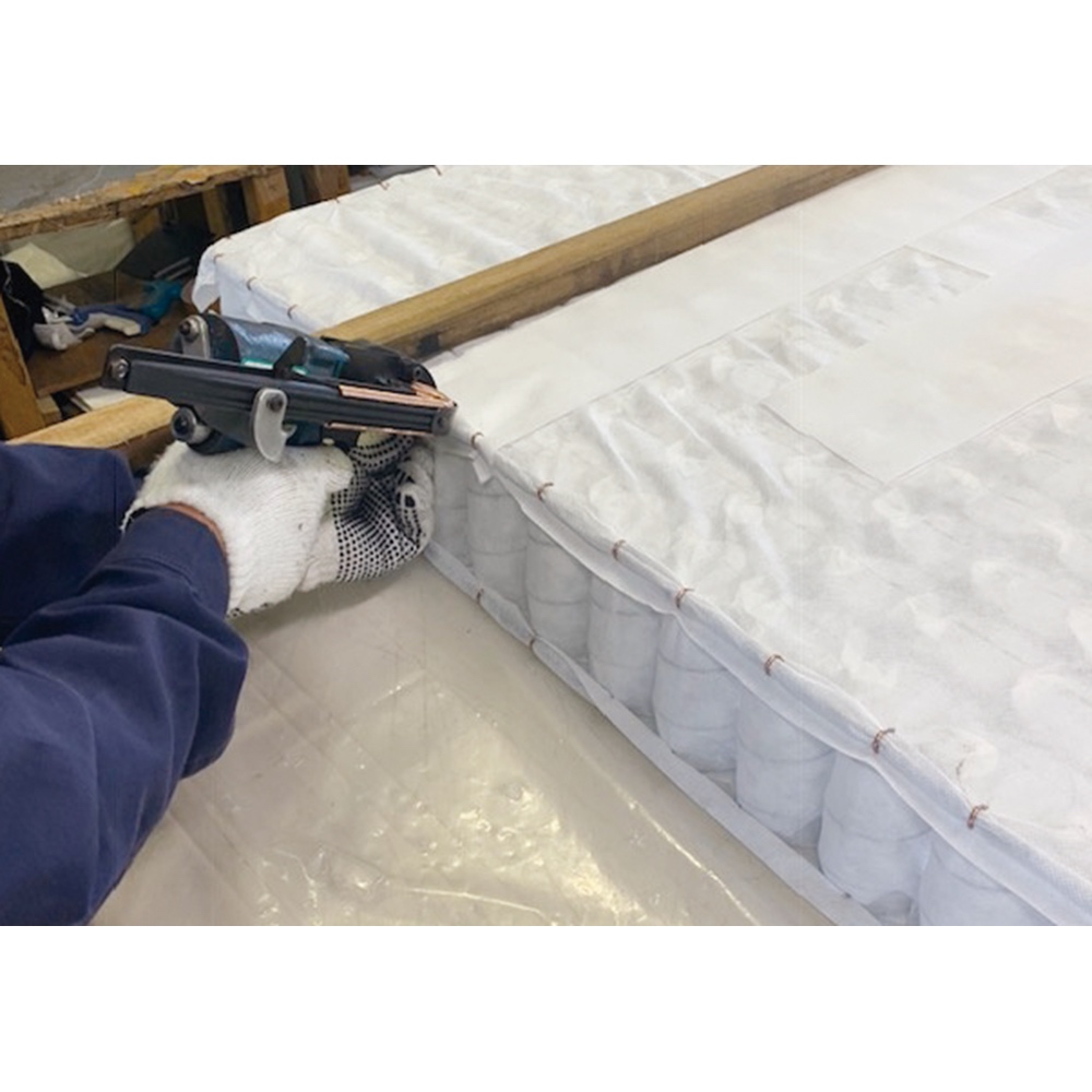 熟練した職人の丁寧な手作業で裁断、縫製。枠線が入ることで型崩れを抑え、マットレスの端に座った時にも安定します。