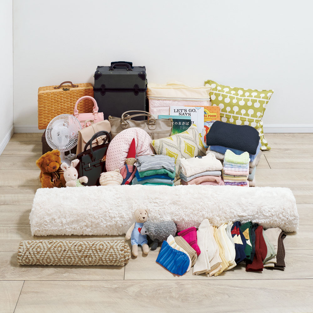 【After】コンパクトでも大量収納!小4杯、大1杯、計5杯の引き出しに衣類やタオル、替えのシーツなどたっぷり収まります。引き出し奥にはゴルフバッグやカーペットなどの長尺物も収納可能。(※写真は幅76cm・ショート)
