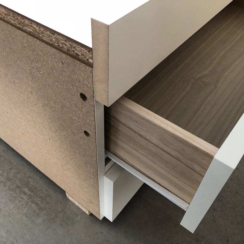 引き出し部分は枠付きなので、衣類などをそのまましまってもほこりが入りにくい構造になっています。