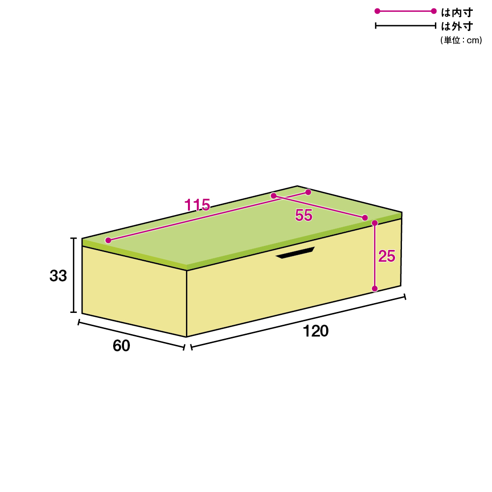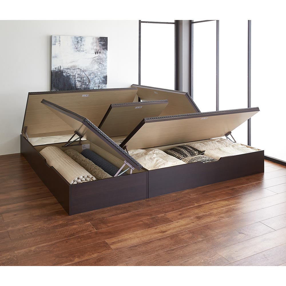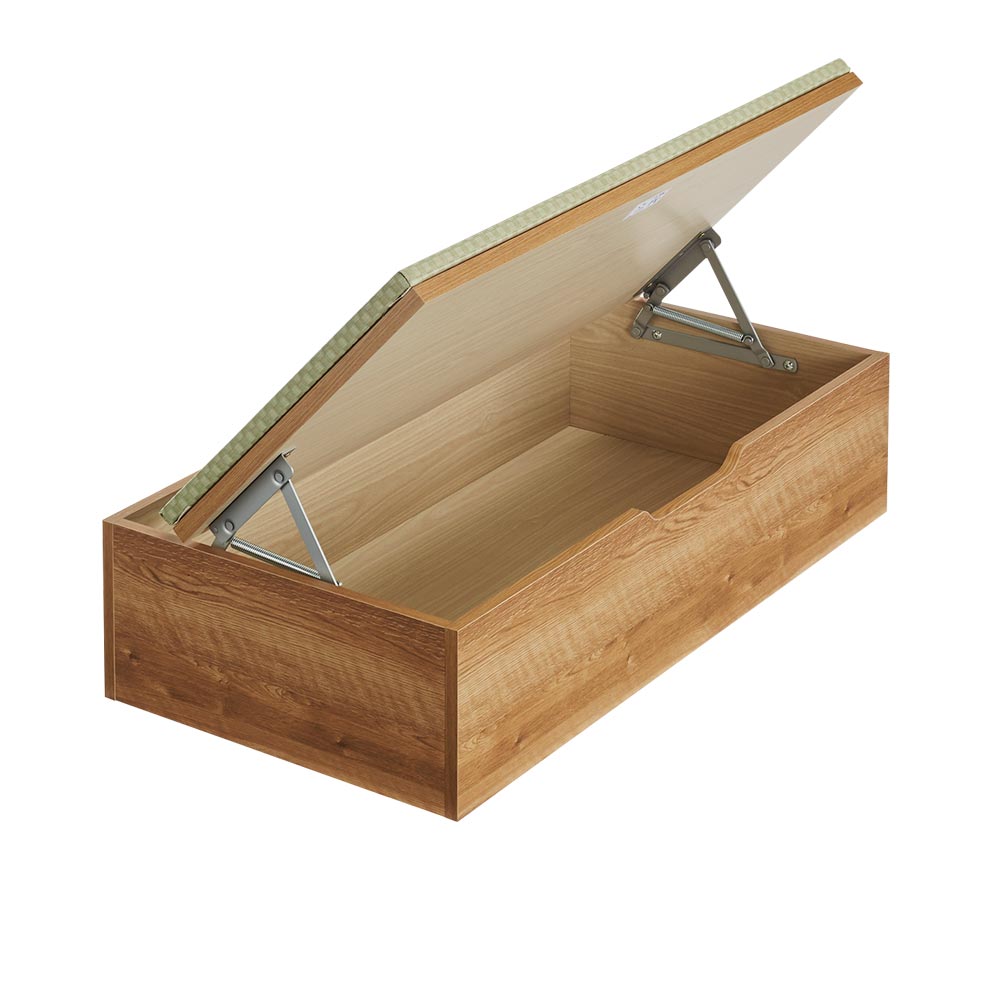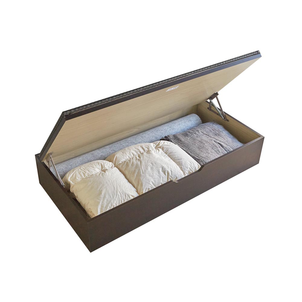 畳面はダンパー構造で開閉をサポート。簡単に開け閉めできます。高さ33cmタイプは1畳分に布団やラグなどが収まります。(収納部内寸高さ25cm)