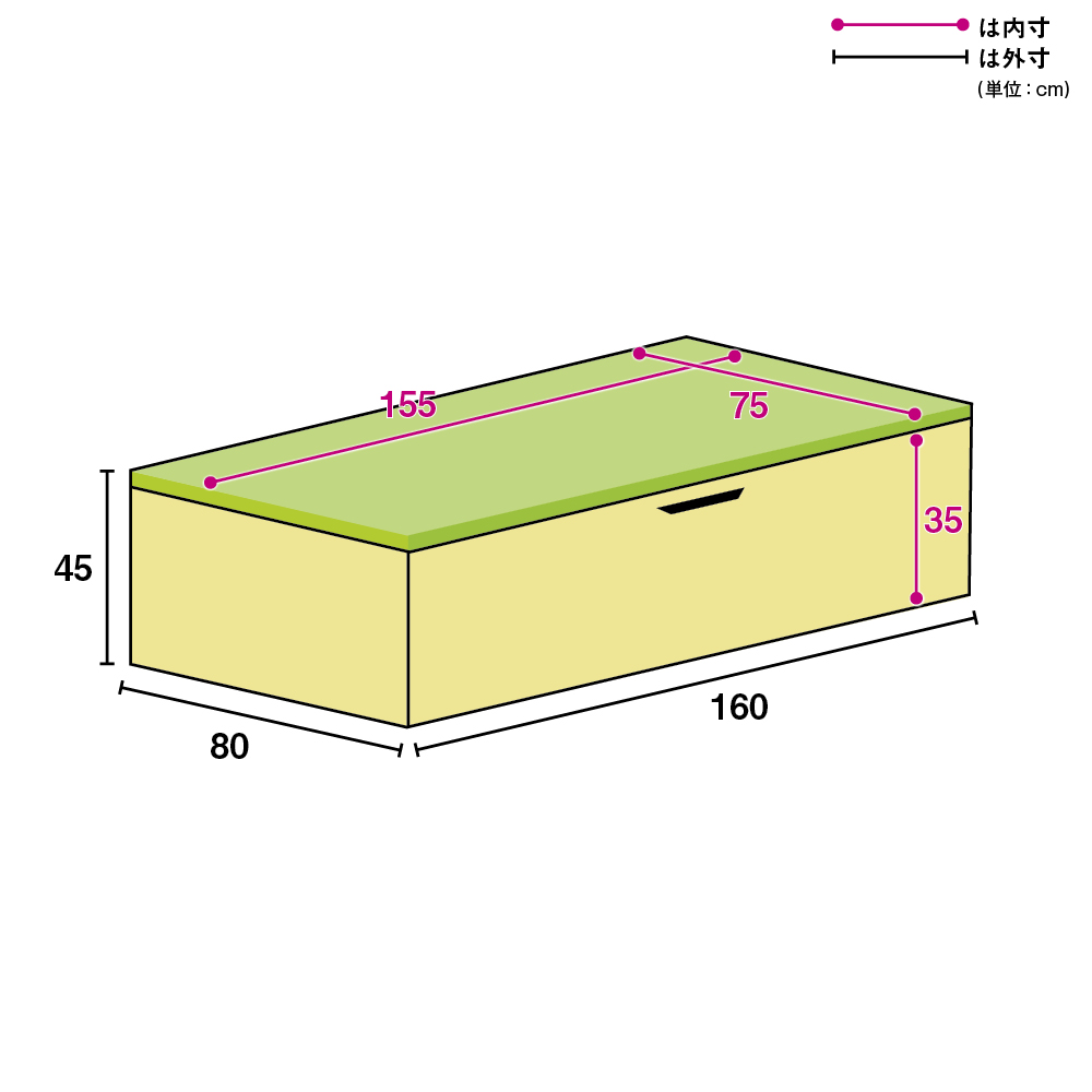 畳サイズ幅160奥行80cmのワイドタイプでゆったりスペースが生まれます。自由なレイアウトで、居心地の良い空間が生まれます。