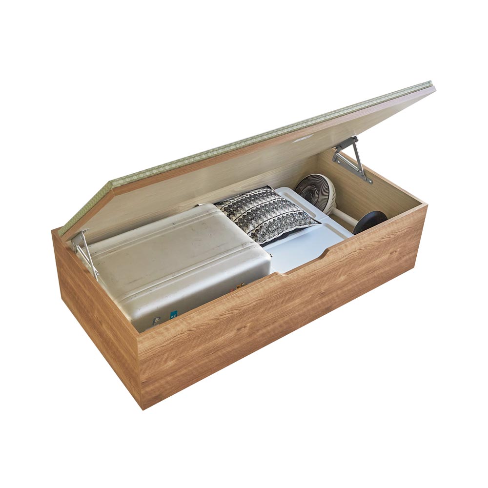 畳面はダンパー構造で開閉をサポート。簡単に開け閉めできます。高さ45cmタイプはスーツケースや家電、収納ケースも収納可能。(収納部内寸高さ35cm)