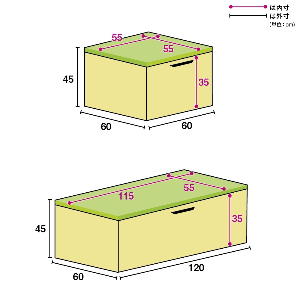 ■サイズ:【高さ45cm大容量 ミニ半畳】幅60cm奥行60cm高さ45cm、【高さ45cm大容量 ミニ1畳】幅120cm奥行60cm高さ45cm