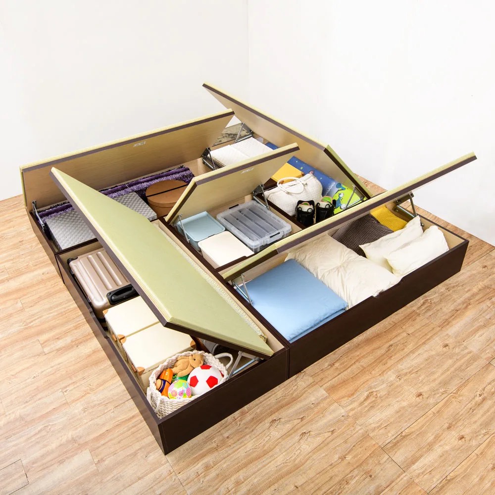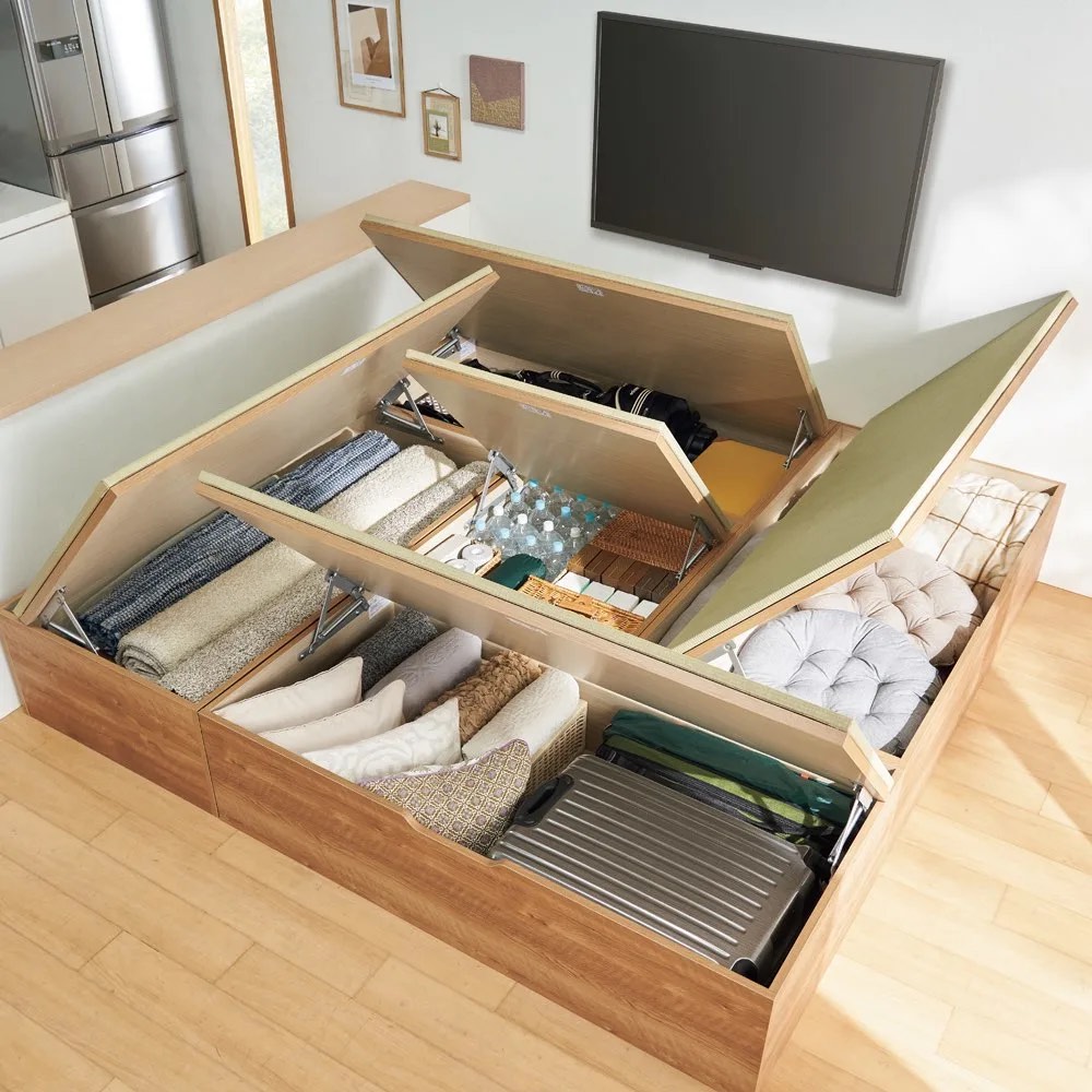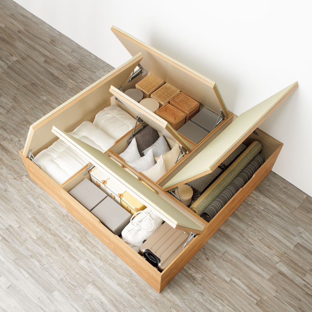 畳下の広いスペースは押入れ並みの収納力。(※写真はヘリ無・半畳+1畳×4・高さ45cm)