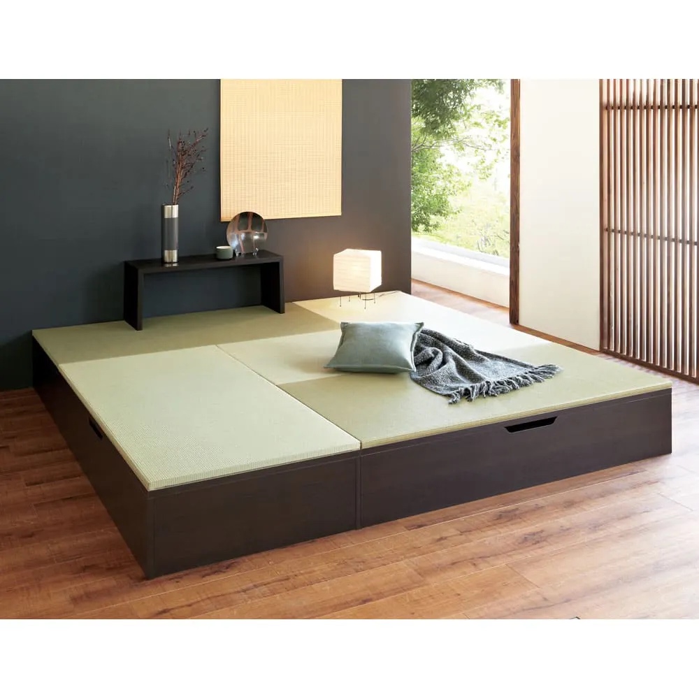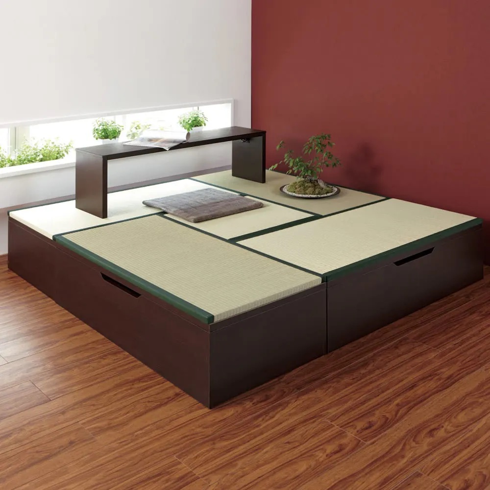 ミニマルな暮らしのお手本として注目されている和の住まいの進化形。置くだけで凛とした空間が生まれ、収納不足も解消します。(※写真はヘリ無・半畳+1畳×4・高さ45cm)
