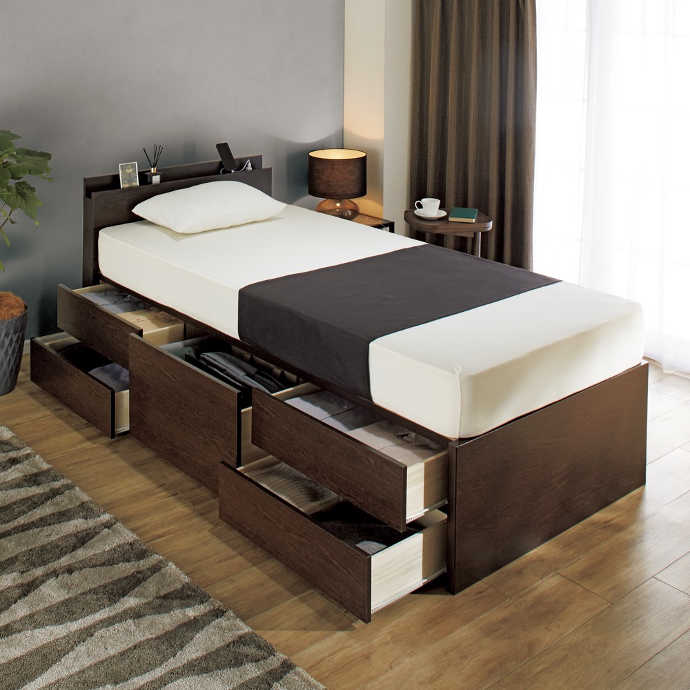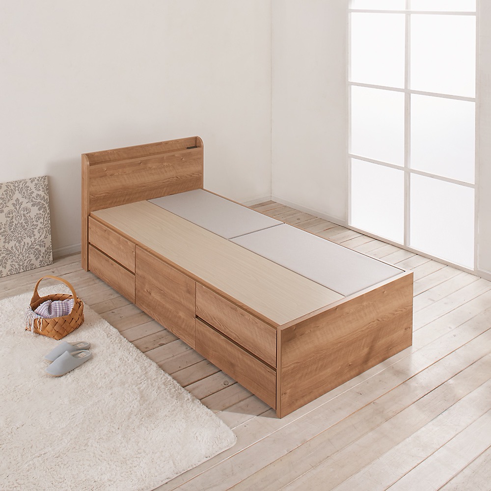 普段使いの収納も、季節ものの寝具などの収納もあきらめたくない人におすすめ!収納部分の収納力がなんと衣装ケース15個分のチェストベッド。