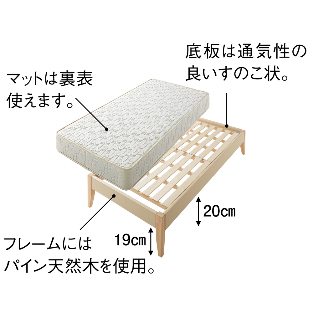 【幅76cmタイプ】幅76長さ190cm・マットまでの高さ52cm・マットレス厚み18cm