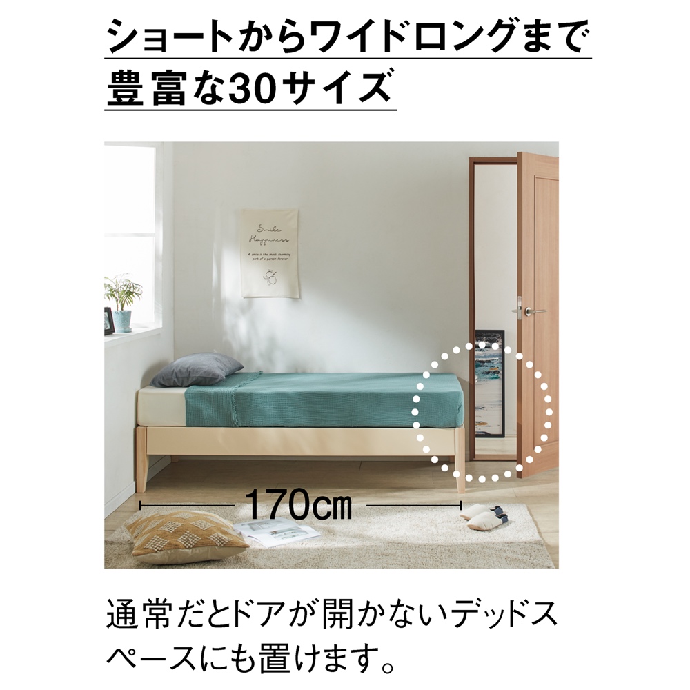 幅76cmなら細くて狭いスペースにおすすめです。 (※写真は幅76cm長さ195cmタイプ)