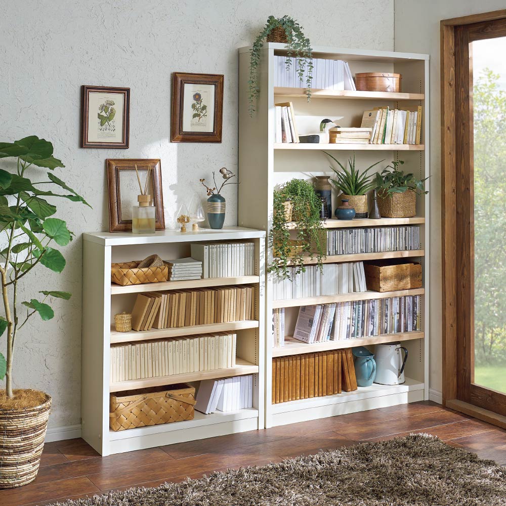 ●1cmピッチの頑丈棚板で細やかに本を大量収納できます。●棚板奥行は26cm。A4ファイル、雑誌、文庫本、新書、コミック、CD、DVD、A5サイズの教科書などが収納できます。