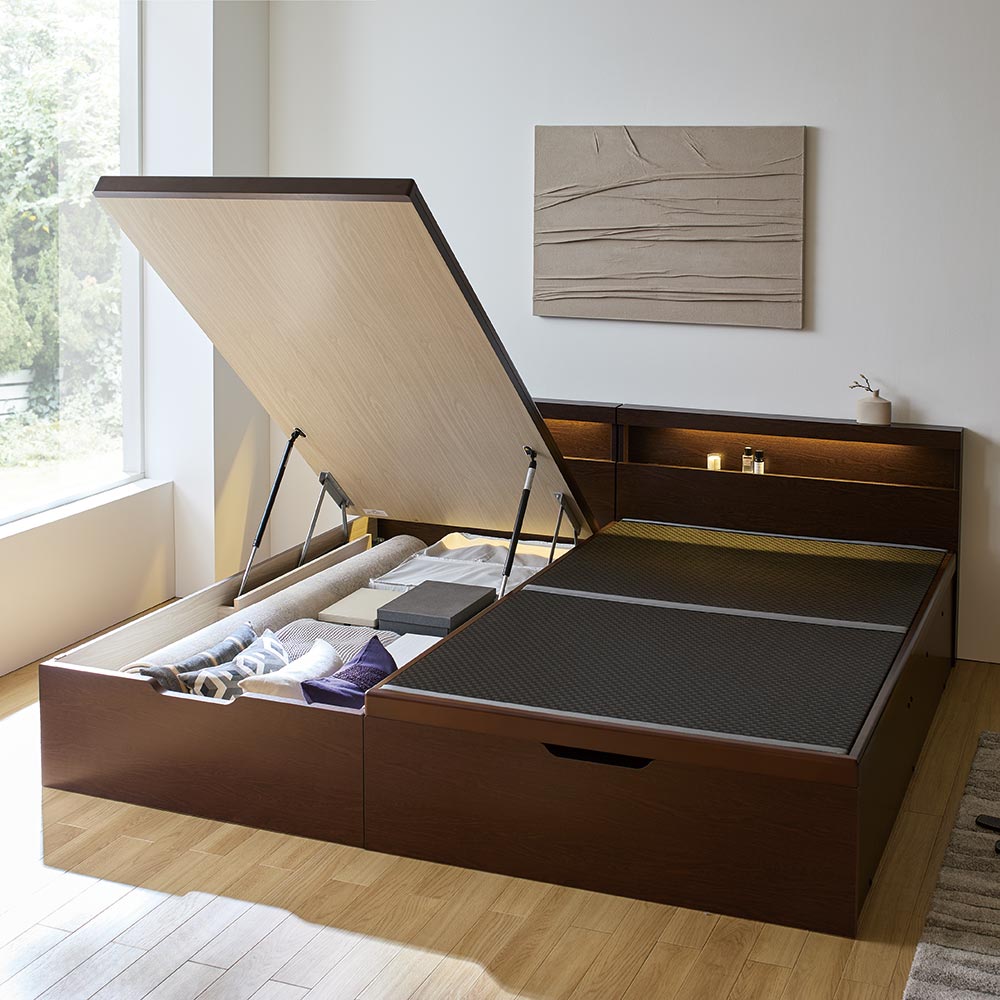 ≪セミダブル 床面高さ40cm≫ Celato/チェラト 照明付きヘッドボード 美草跳ね上げ床下収納ベッド ベッドフレーム ベッド H95235
