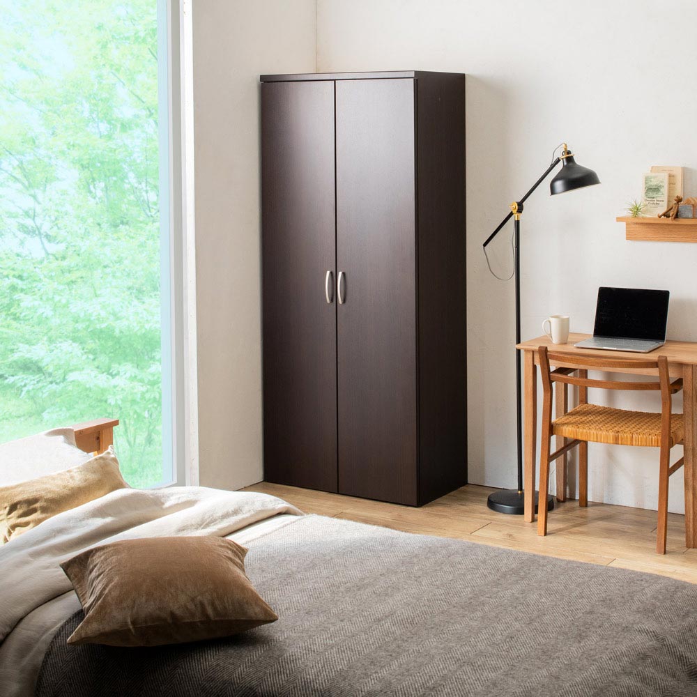 使用イメージ(ア)ダークブラウン 開閉しやすい扉付きで日当たりのよいお部屋でも安心。コレクションを日焼けやほこりから守ります。 ※写真は別売りの幅80cmタイプです。