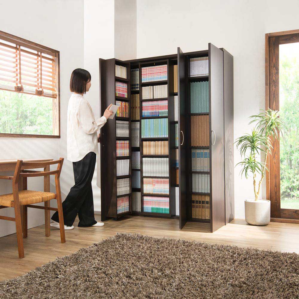 扉裏まで活用する圧倒的な収納力で、多彩な本を集約できます。 ※写真は(ア)ダークブラウンです。