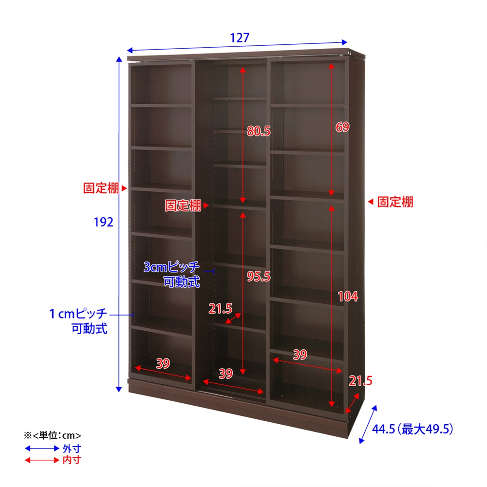 ■サイズ:幅127奥行44.5・49.5高さ192cm、重量約104kg