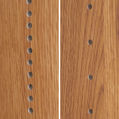 • 手前の棚板は1cmピッチ、奥は3.2cmピッチで高さを調節でき、効率よく本を収納できます。