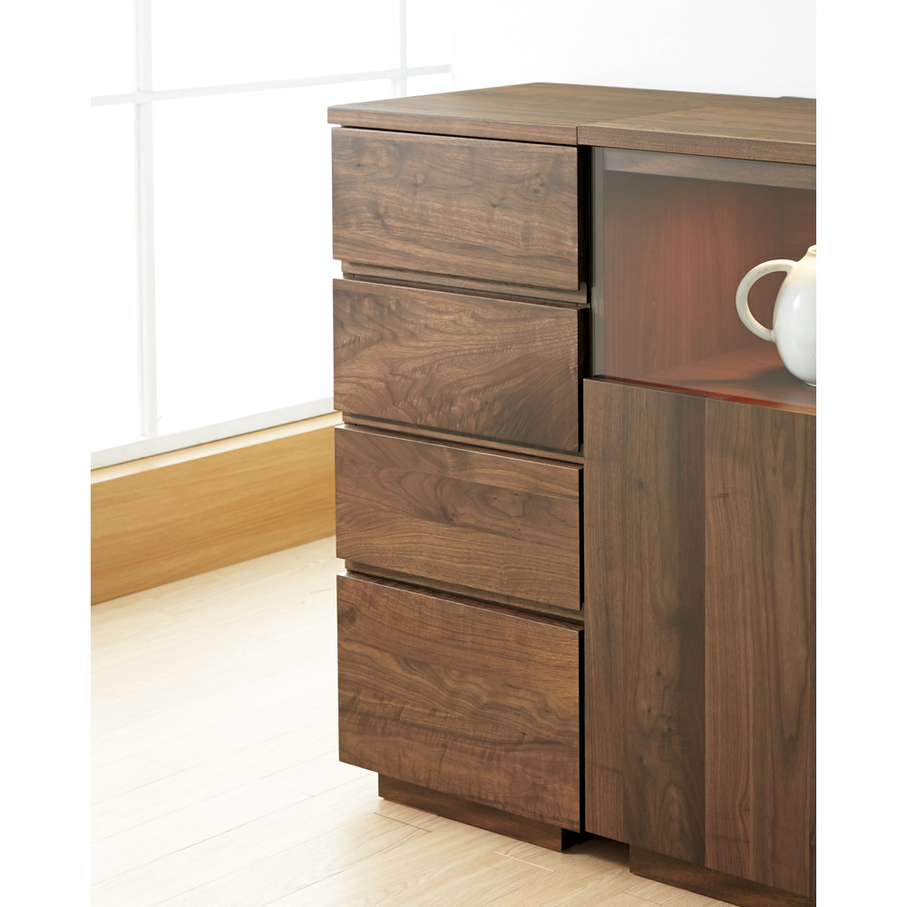 高級感あるウォールナット天然木の木目の引き出し前板