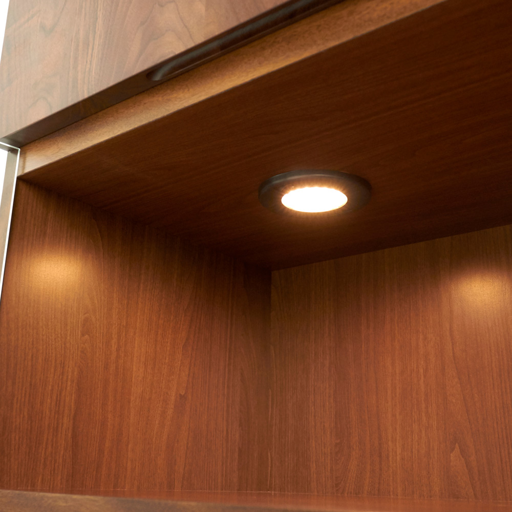 点灯時 コレクションが引き立つ、LEDダウンライト付き。※写真はシリーズのサイドボードです。