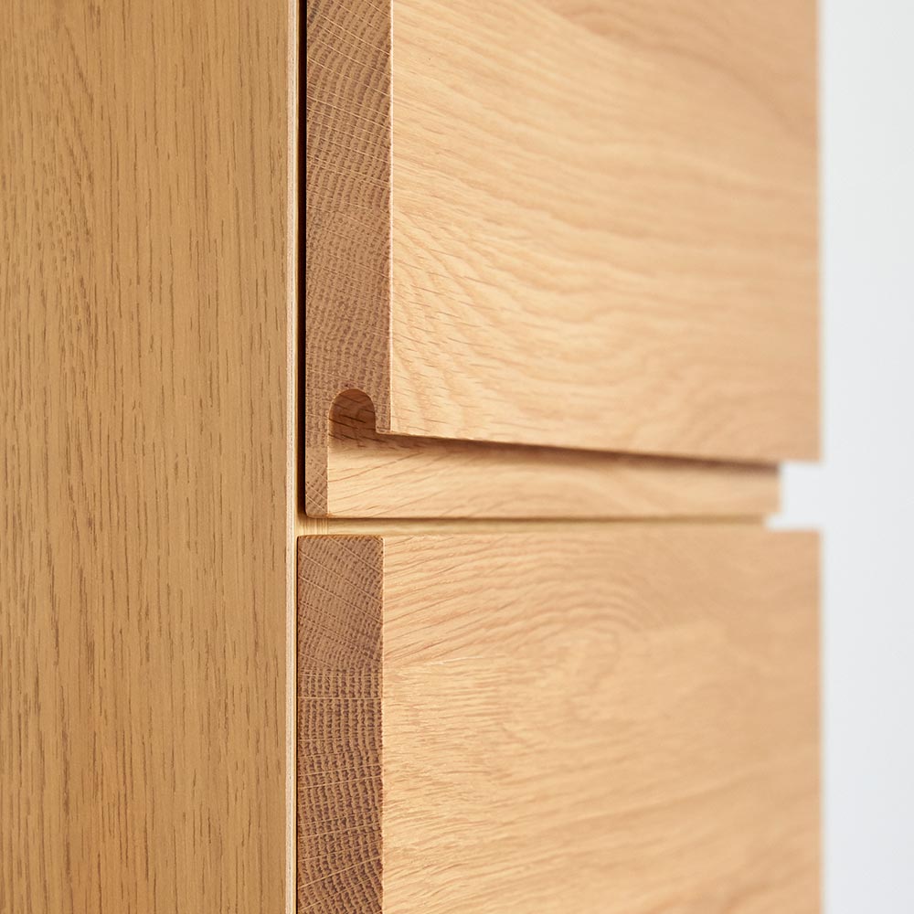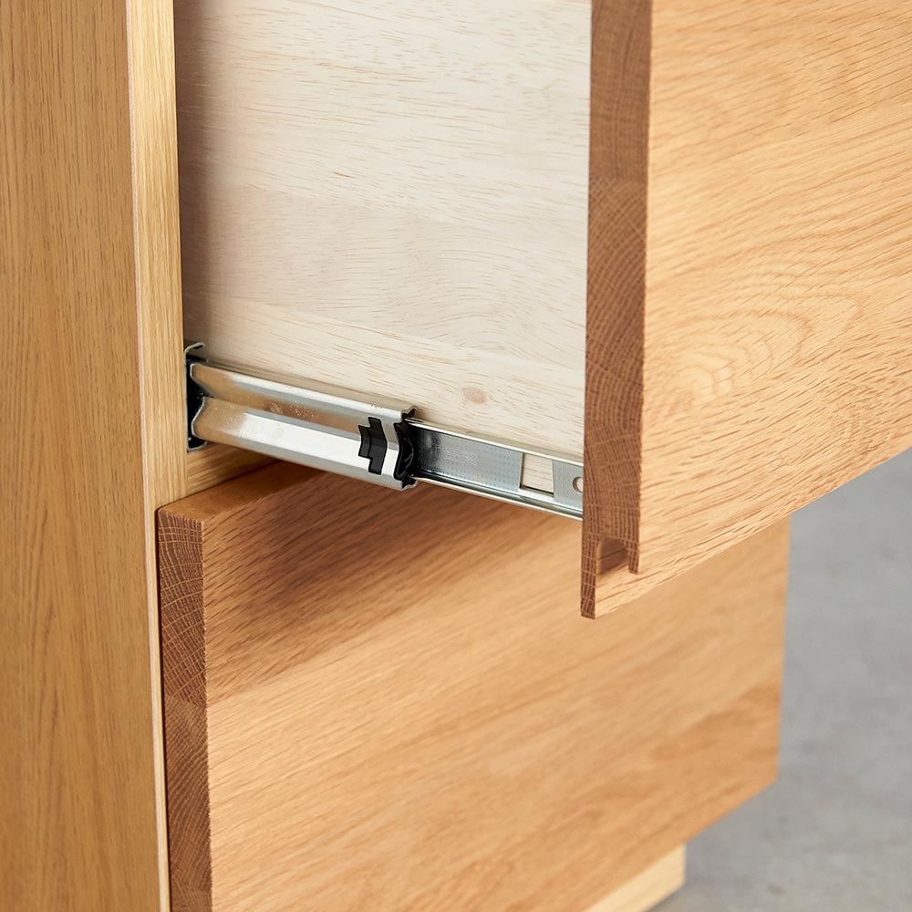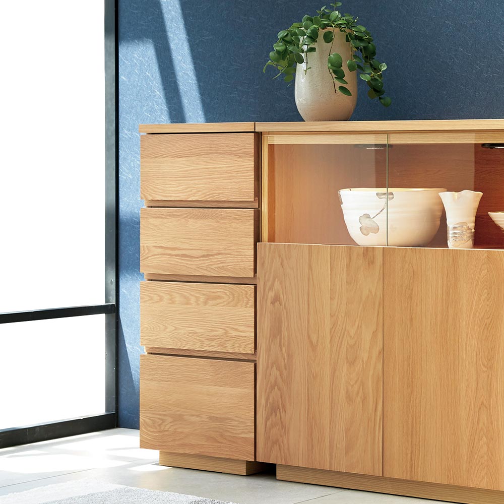 大切なコレクションをしまう場所にふさわしい重厚感。引き出しには奥のモノも出し入れしやすいフルスライドレールを採用。