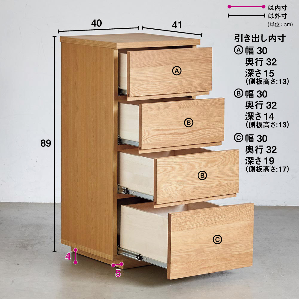 ■サイズ:幅40cm 奥行41cm 高さ89cm 引き出し奥行32cm