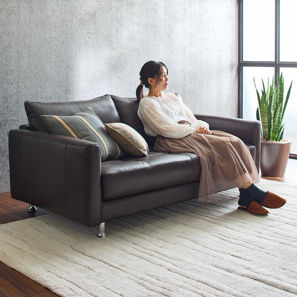 ◎全体的にややロータイプにデザインされたソファなのでお部屋に置いた時にシャープに見え、お部屋が引き締まります。◎広々とした座面サイズながら、お部屋に圧迫感を与えないすっきりとしたデザインです。