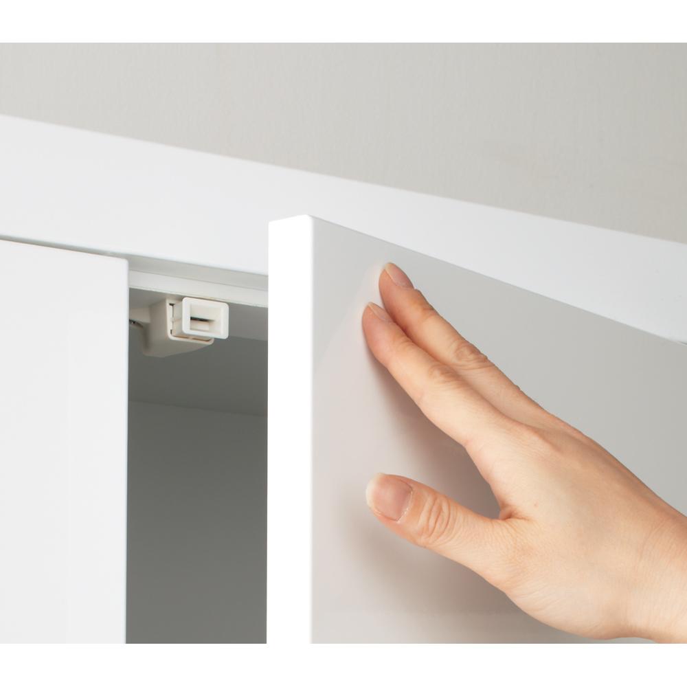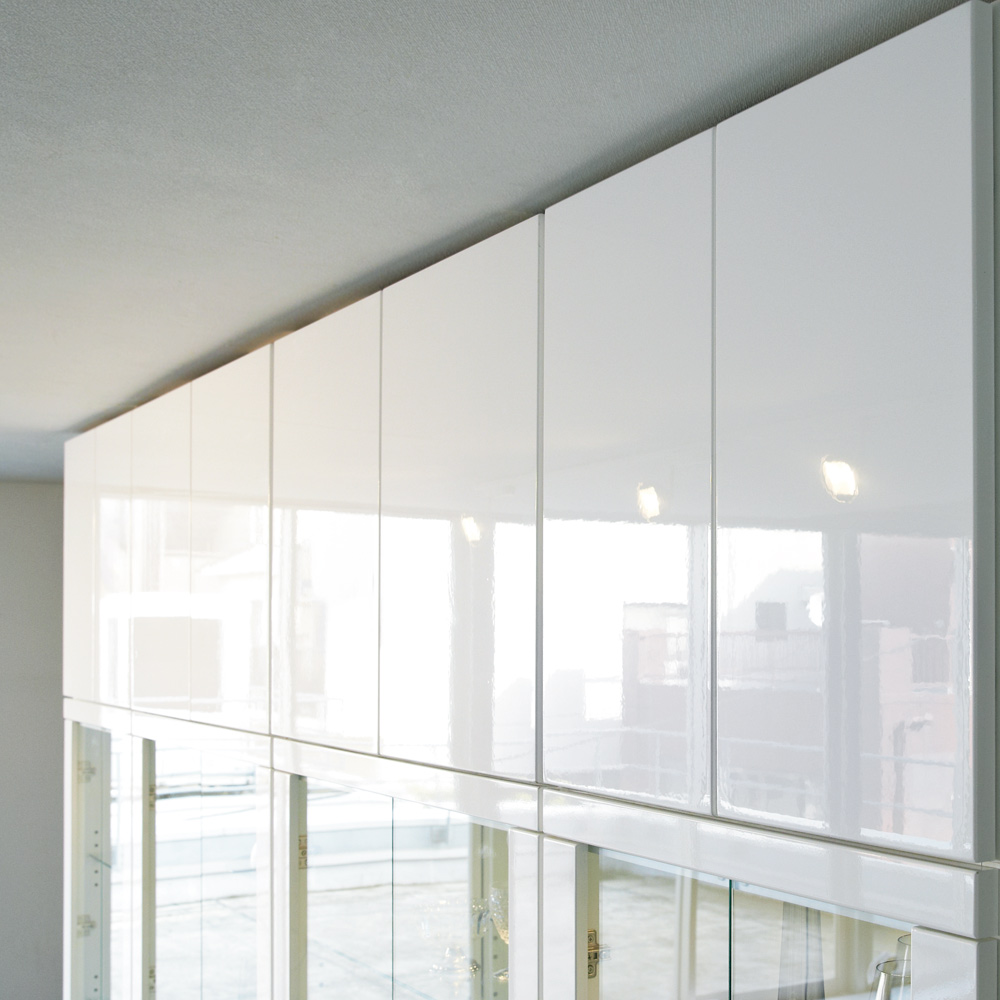 ホワイト色は板扉部分に美しい光沢が持続する高品質なハイグロスシートを使用。