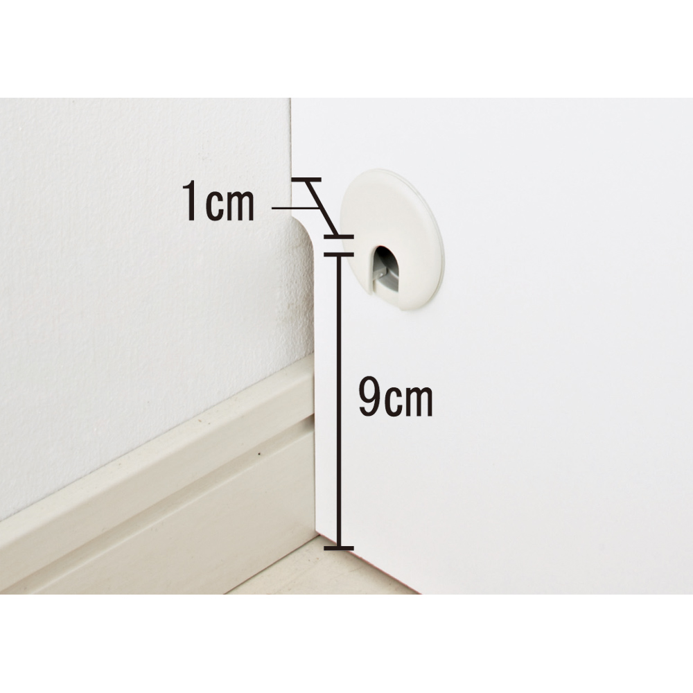 幅木よけカット 壁にぴったり設置可能。両側面にコード穴を設 けています。