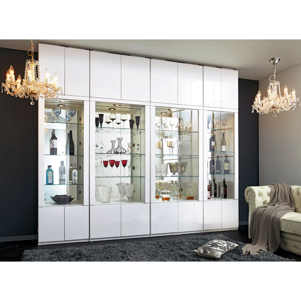美しく飾れる 光沢仕上げ収納システム ガラス扉コレクションケース 幅60cm コレクションケース ディスプレイラック 飾り棚 本棚 ラック シェルフ 546908