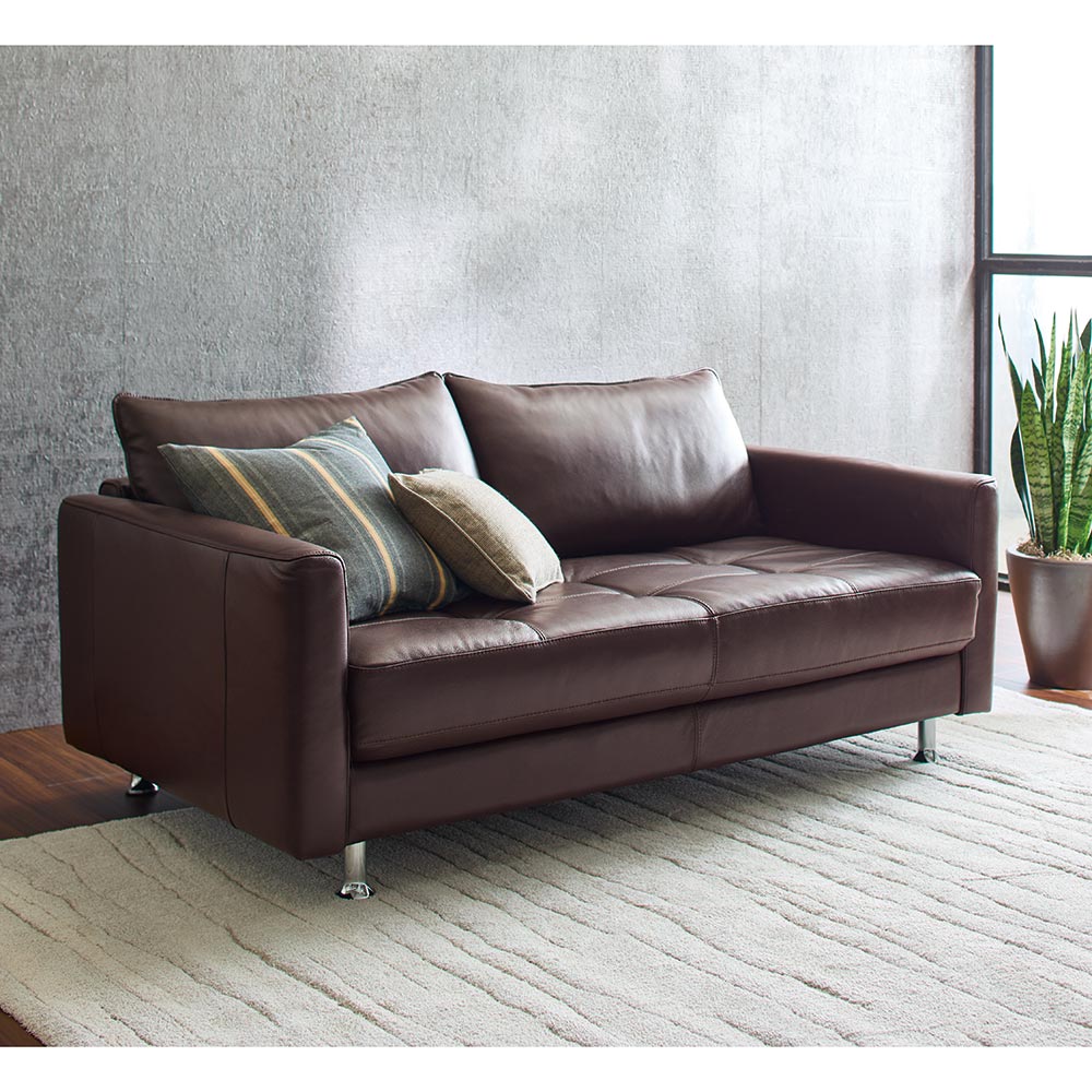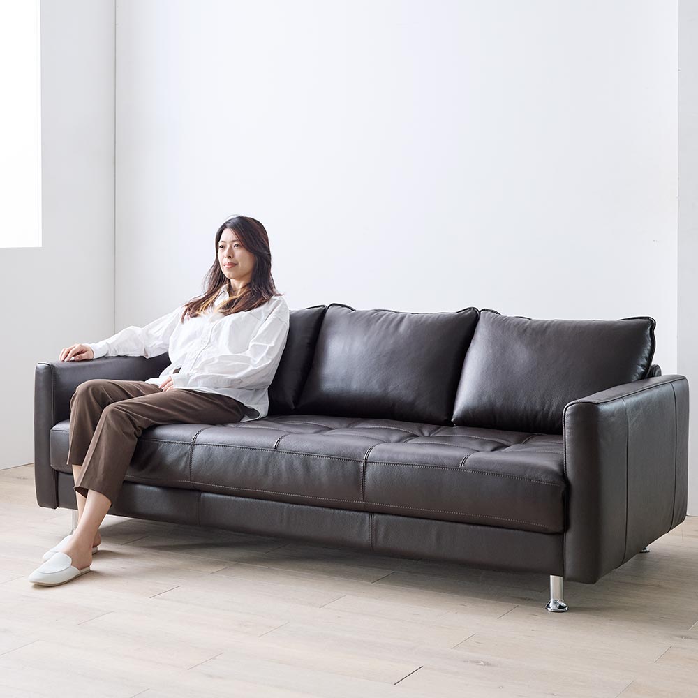 2008年の発売からご好評をいただいているロングセラーの革張りソファ。