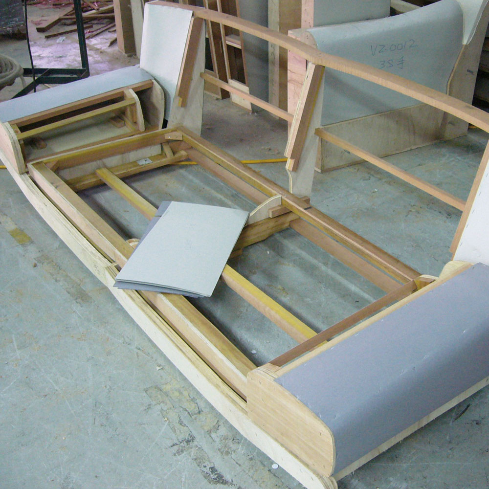 革のなめしから、ウレタン・フレームまでを一貫生産しているので、品質の悪い材料があった場合にはその場で状態の良いものに交換することができます。