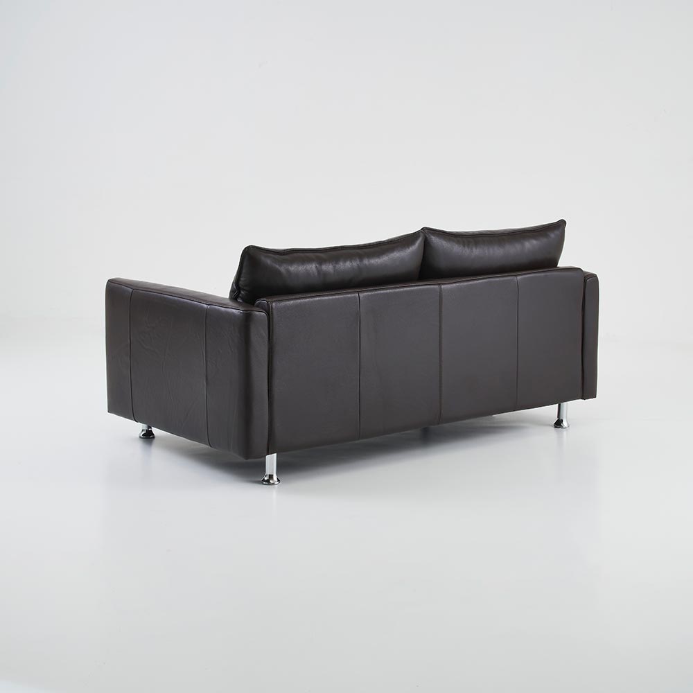 ◎シャープなデザインの肘掛けと美しいクロムメッキのスチール製の脚部が絶妙なバランスの本革ソファーです。