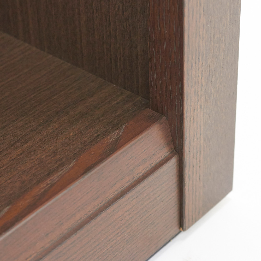●前面にフレームがあるため、棚板も落ちにくいこだわりの設計です。
