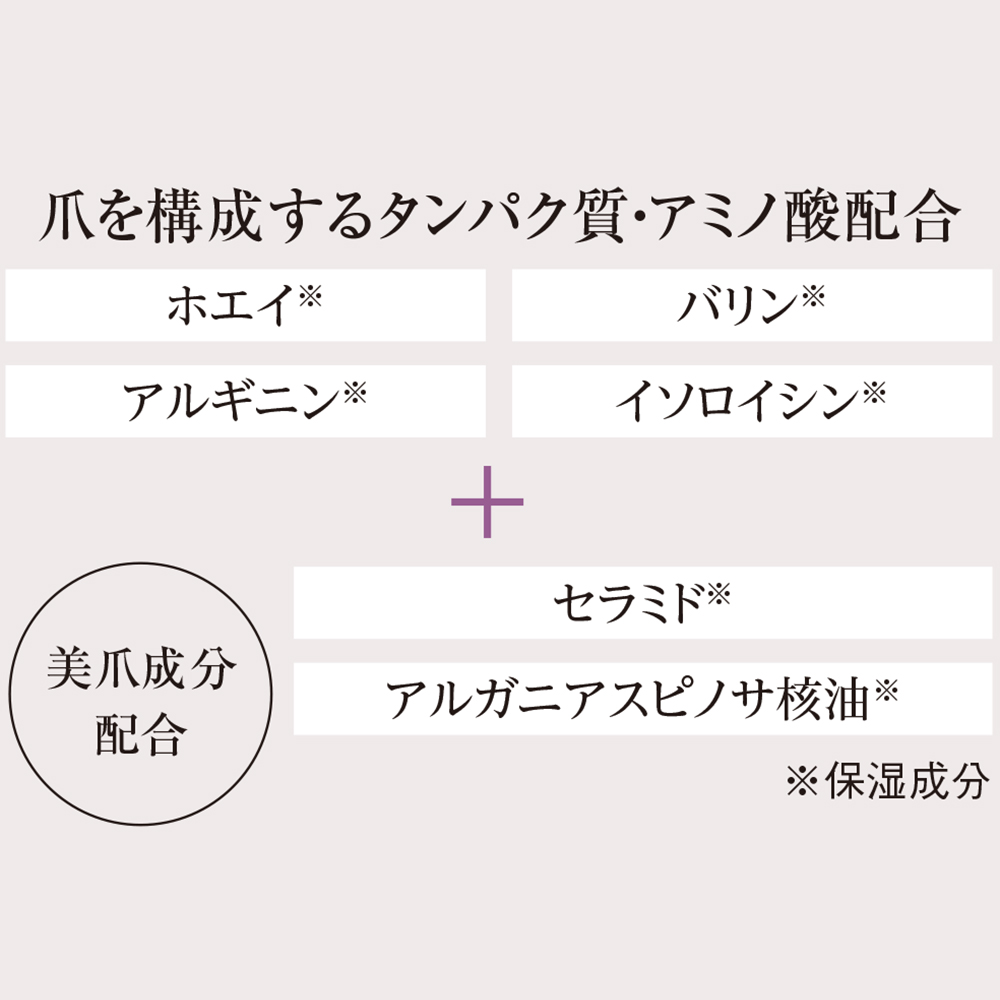 弱い爪には、爪専用の美容液を。爪を構成するタンパク質を補給して表面を保護しながら、爪まわりの肌も保湿。塗り重ねるたびに、健やかな硬爪へ導きます。足の爪にもOK。
