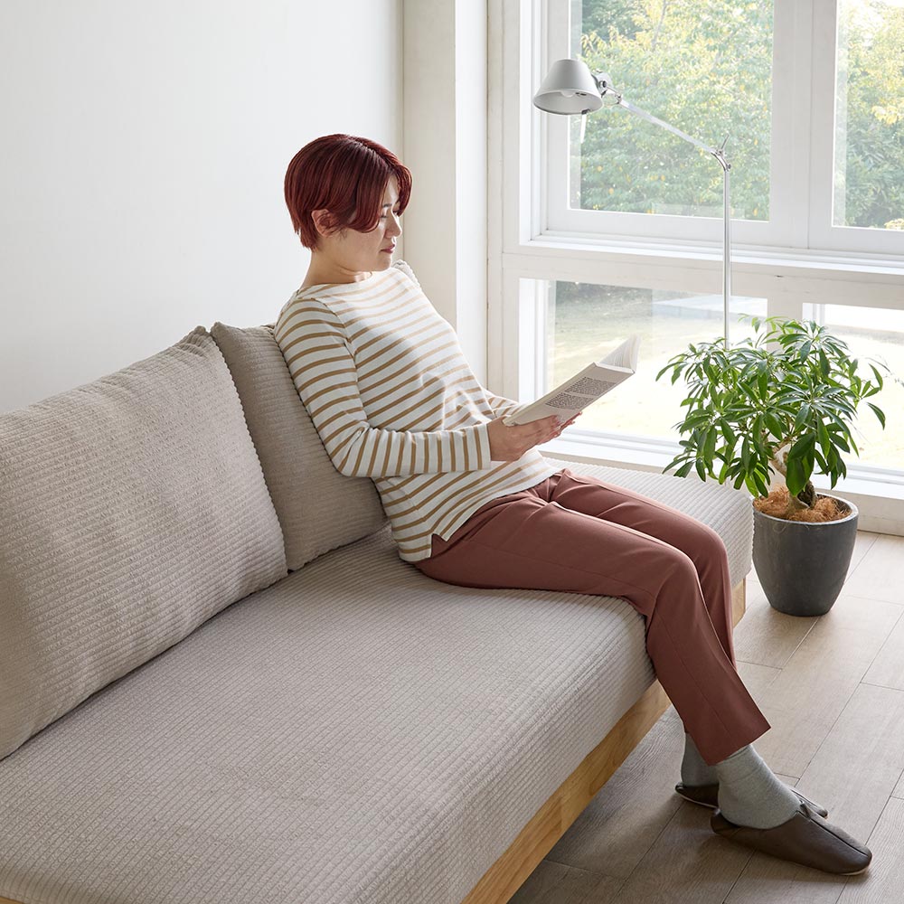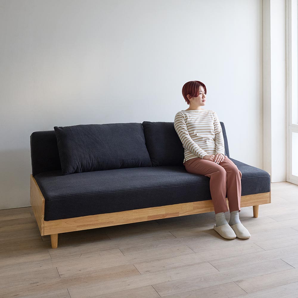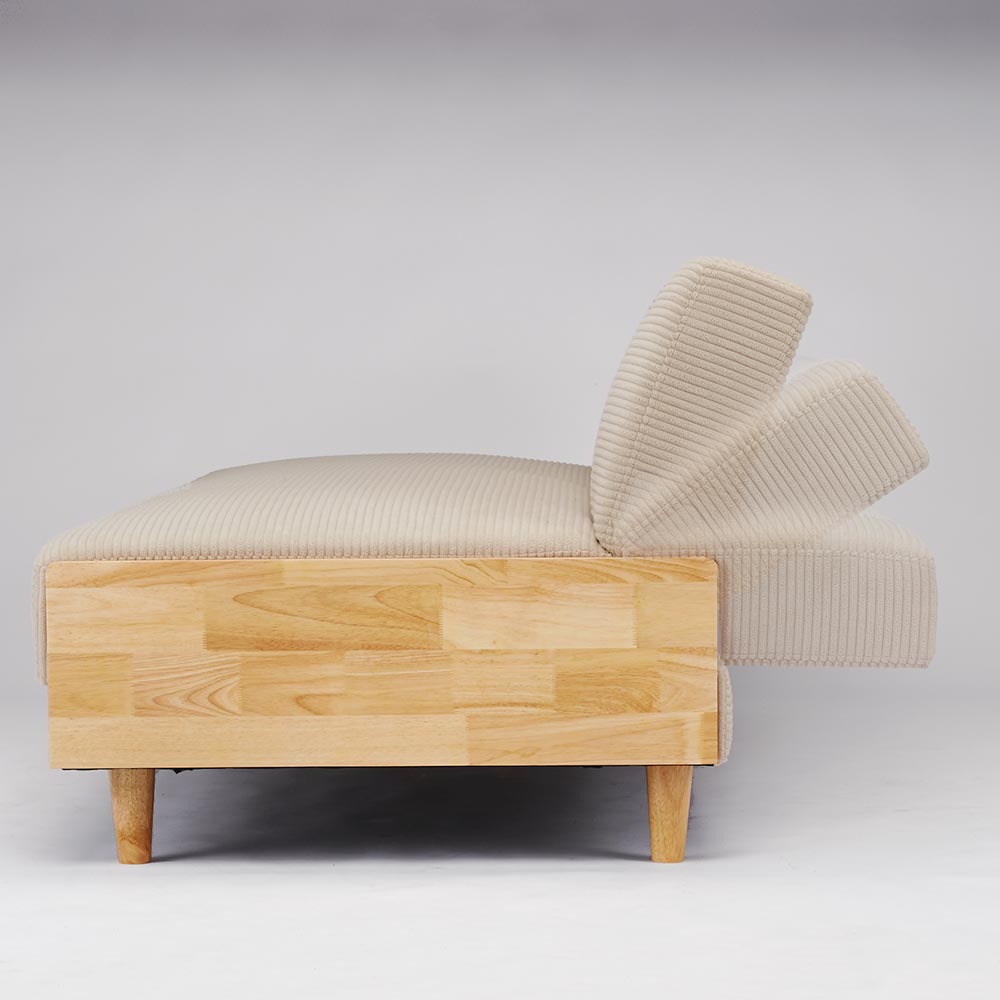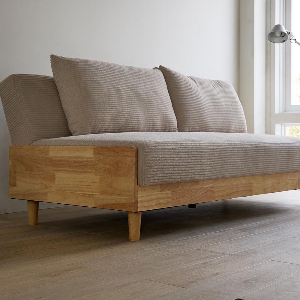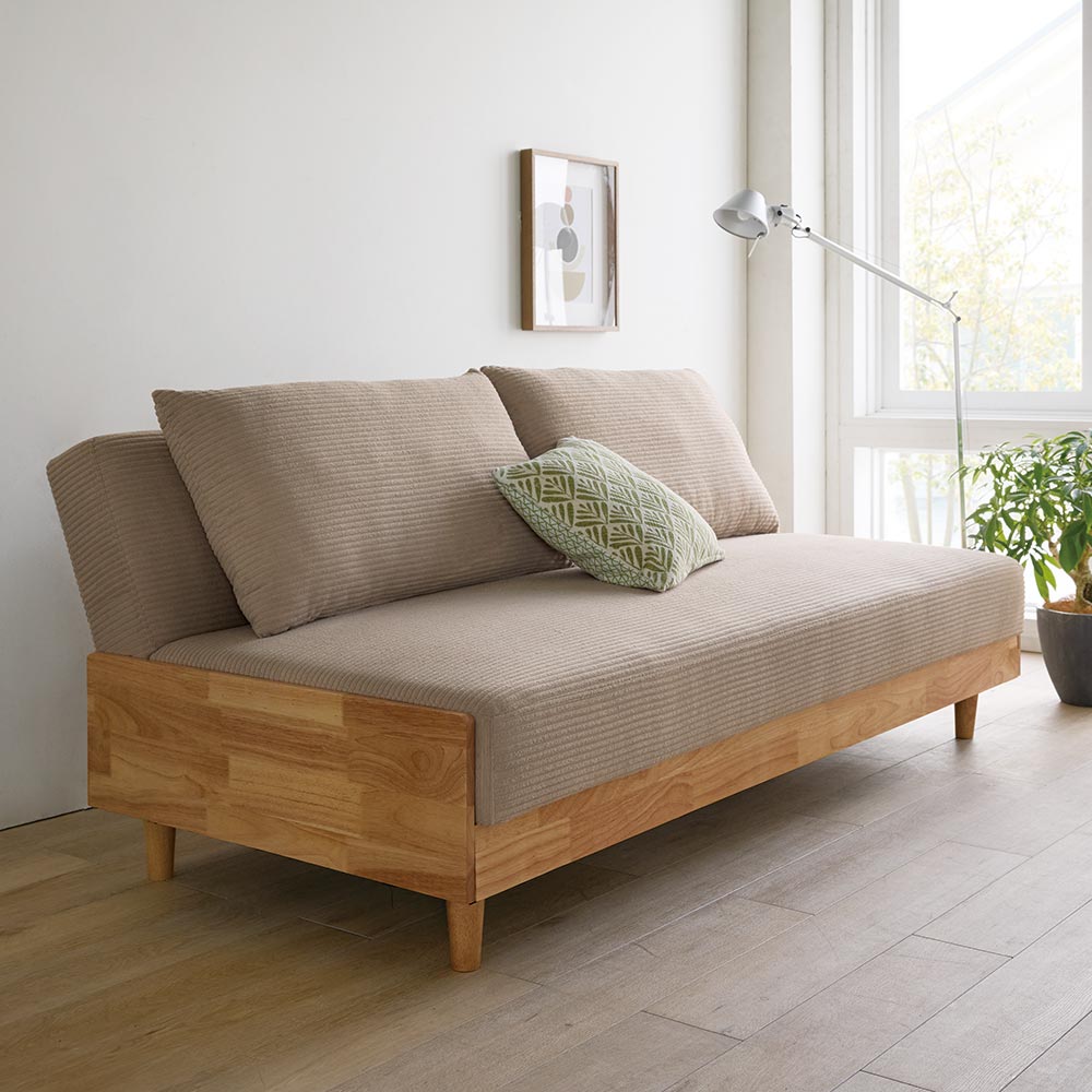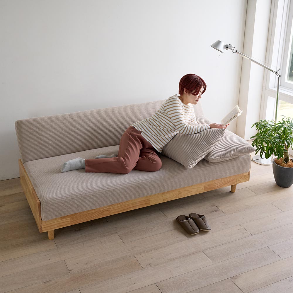くつろぎと眠りを自在に切り替え。木目の美しさと機能性を兼ね備えた、暮らしのパートナー。くつろぐ時間も、しっかり眠りたい時も、1台で対応。スペースに余裕がないお部屋でも、リビングとベッド、両方の機能をムダなく実現します。